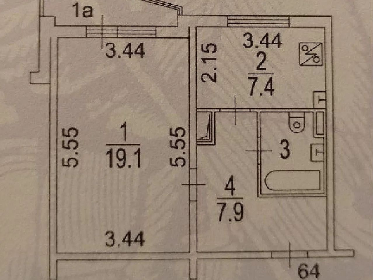 Жилая площадь 19.1 м2