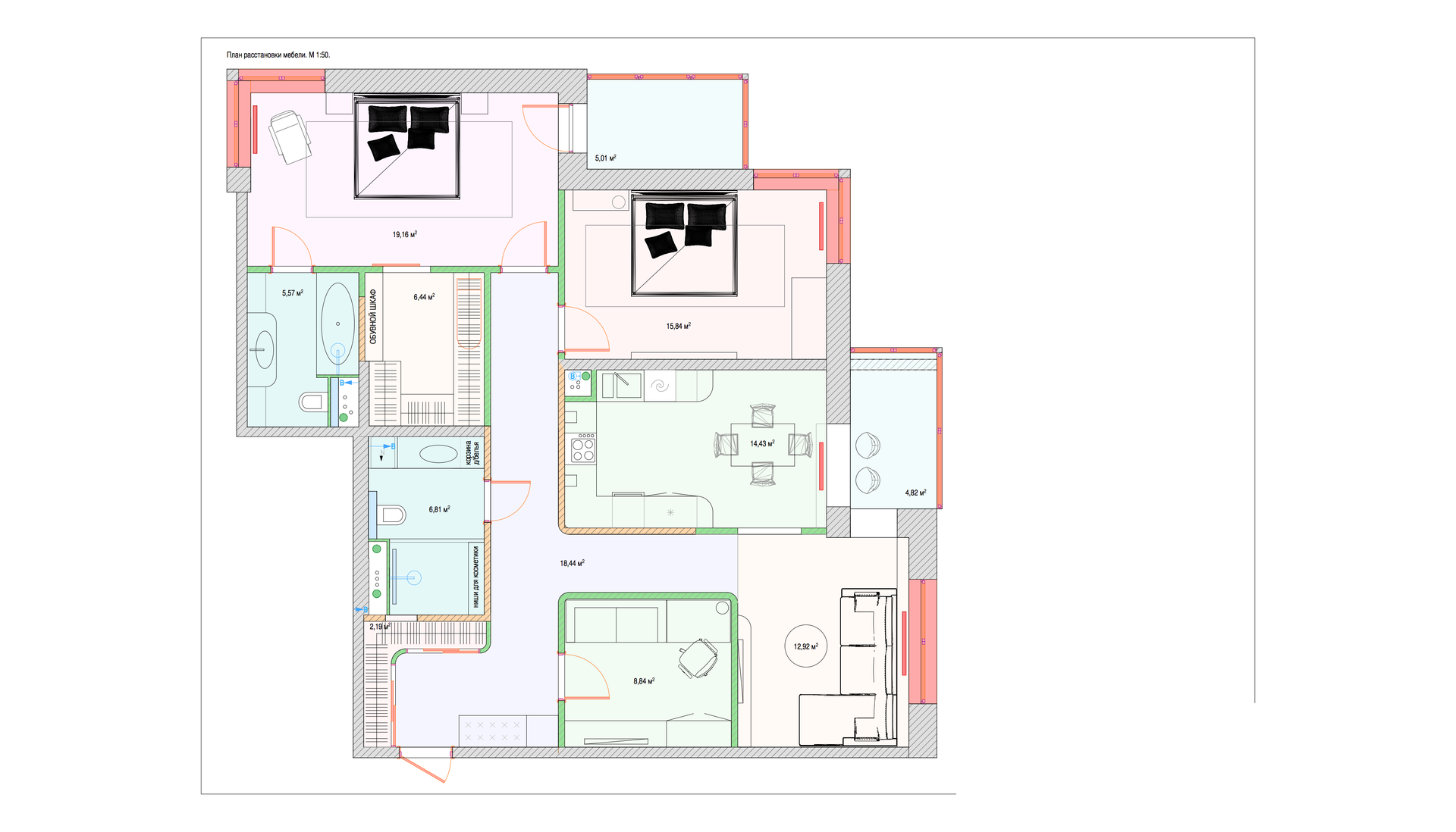 Жилая площадь 56.8 м2