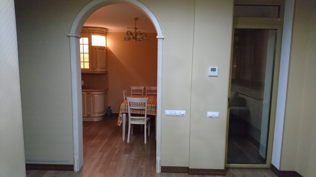 Дорогие материалы отделки Германия, Испания, Италия. Две дорогие сплит системы. Система приточно-вытяжной вентиляции. Теплый пол по всей площади квартиры. Итальянская кухня. Встроенная техника Smeg. Водяные фильтры. Окна Kaleva. Встроенный шкаф в прихожей и гардеробная Mr.Doors. Все двери заказная продукция высокого качества. Натяжные потолоки. Многозональная подсветка. Роль ставни на окнах. Надежный пожарозащитный сейф. Охранная система пультовая.