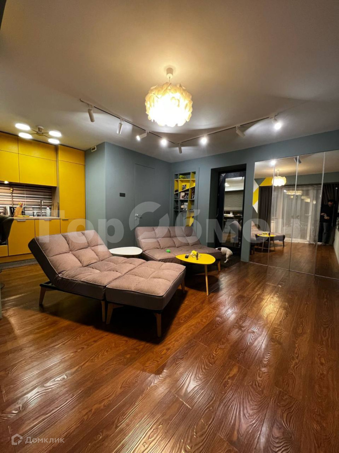 Функциональная планировка: изолированная спальня с кроватью-трансформером и вместительными шкафами для хранения вещей. Просторная кухня-гостиная с встроенной техникой и мебелью выполненной на заказ. Объединенный санузел. Утепленная лоджия с двойными стеклопакетами и выходами на нее из двух комнат и теплым электрическим полом. Остается мебель и крупная бытовая техника.