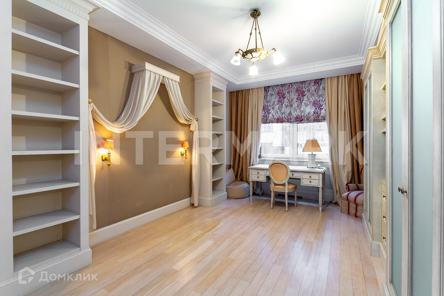 Лот 62062. Элегантная 5-комнатная квартира с эксклюзивным интерьером в элитном доме в Филипповском переулке в районе Арбата. На 210 кв.м удалось комфортно спланировать мастер-спальню с с/у и гардеробной, 2 детские комнаты, кухню, гостиную, кабинет, дополнительную ванную комнату, гостевой с/у и постирочную. Предусмотрена система «Умный дом». Окна квартиры выходят в уютный зеленый сквер.