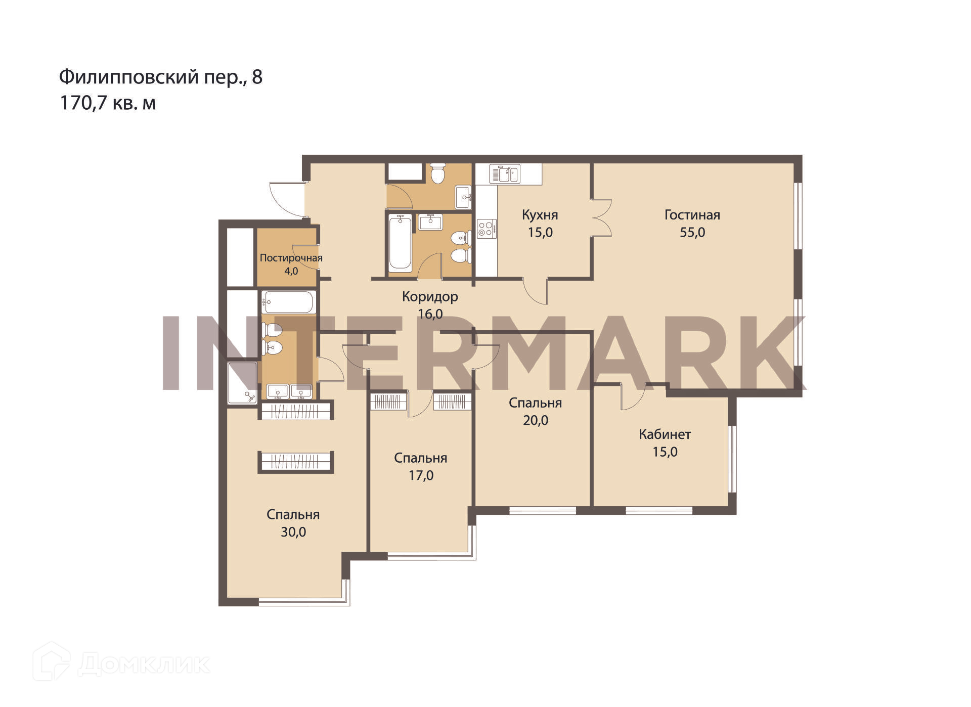 5-комнатная квартира, 210 м2, этаж 3 / 10, на продажу в Москве, Филипповский переулок, 8с1