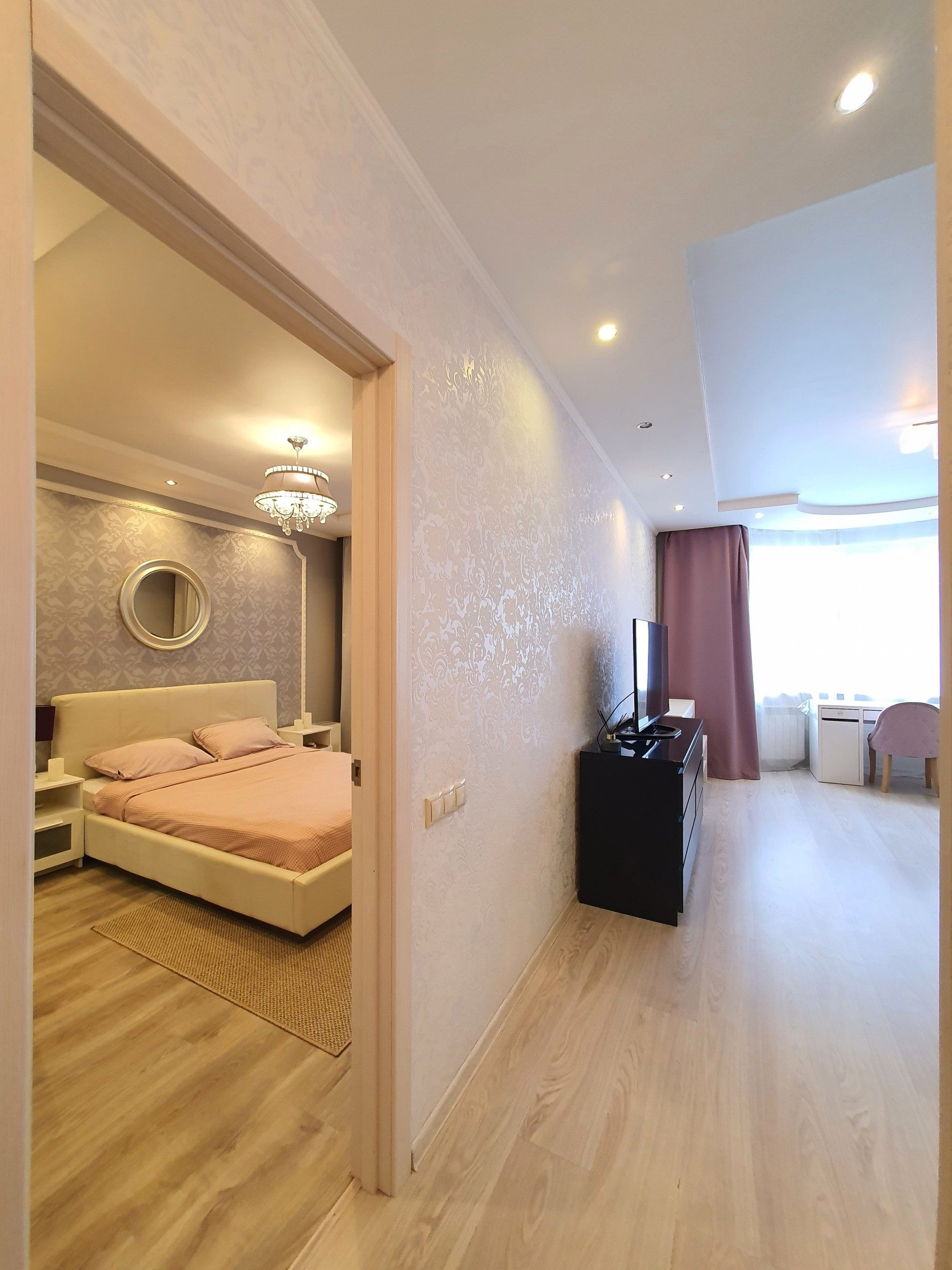 Продам светлую евродвушку с остекленным балконом, гардеробной, эркером в кухне-гостиной.