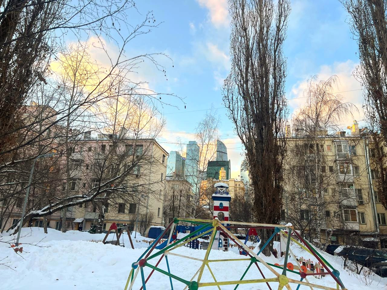 Двора видно башни Москва Сити, также туда можно добраться пешком от дома через Мост Багратион.