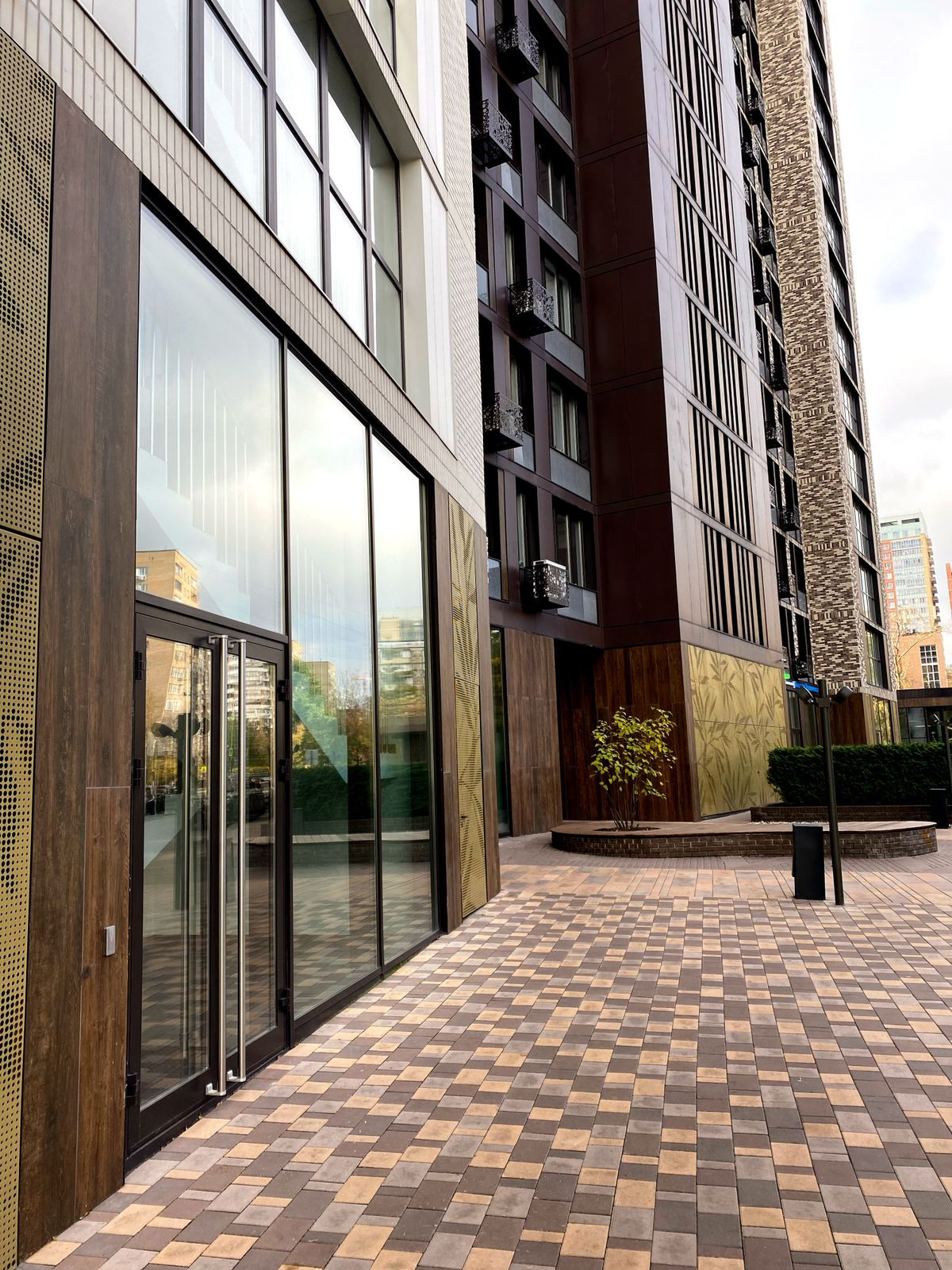 В доме фитнес центр «World Class» с бассейном, магазины «Ароматный мир», «ВкусВилл», кафе Tour de France, аптека «36,6», продуктовый маркет «мини Лента», автомойка.