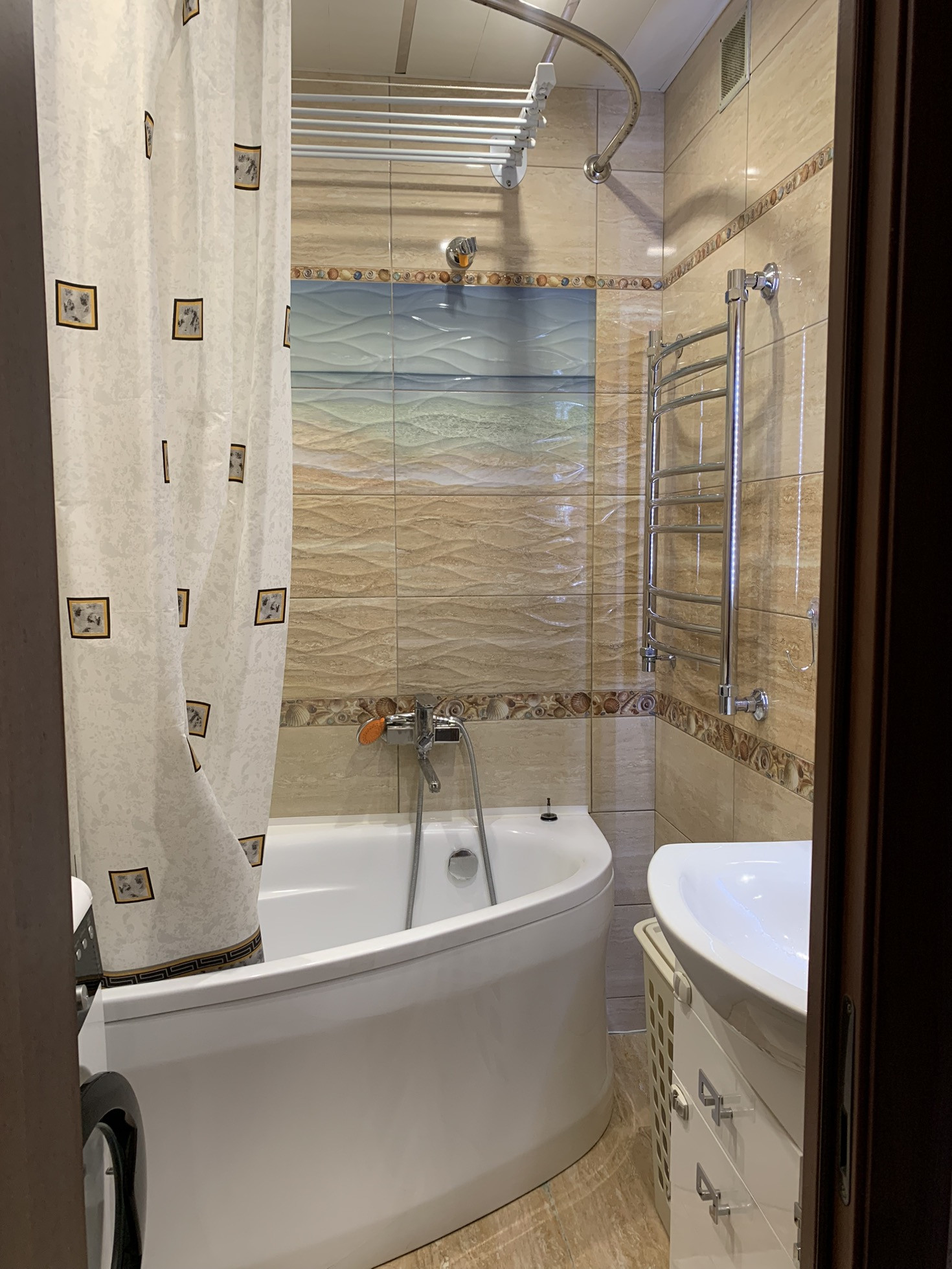 раздельный санузел в идеальном состоянии, кухня 10м2.  Мебель и техника остаются. Санузел в плитке.Кондиционер.