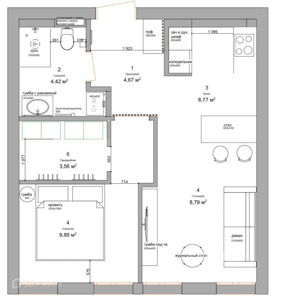 Общая площадь 47.91 м2