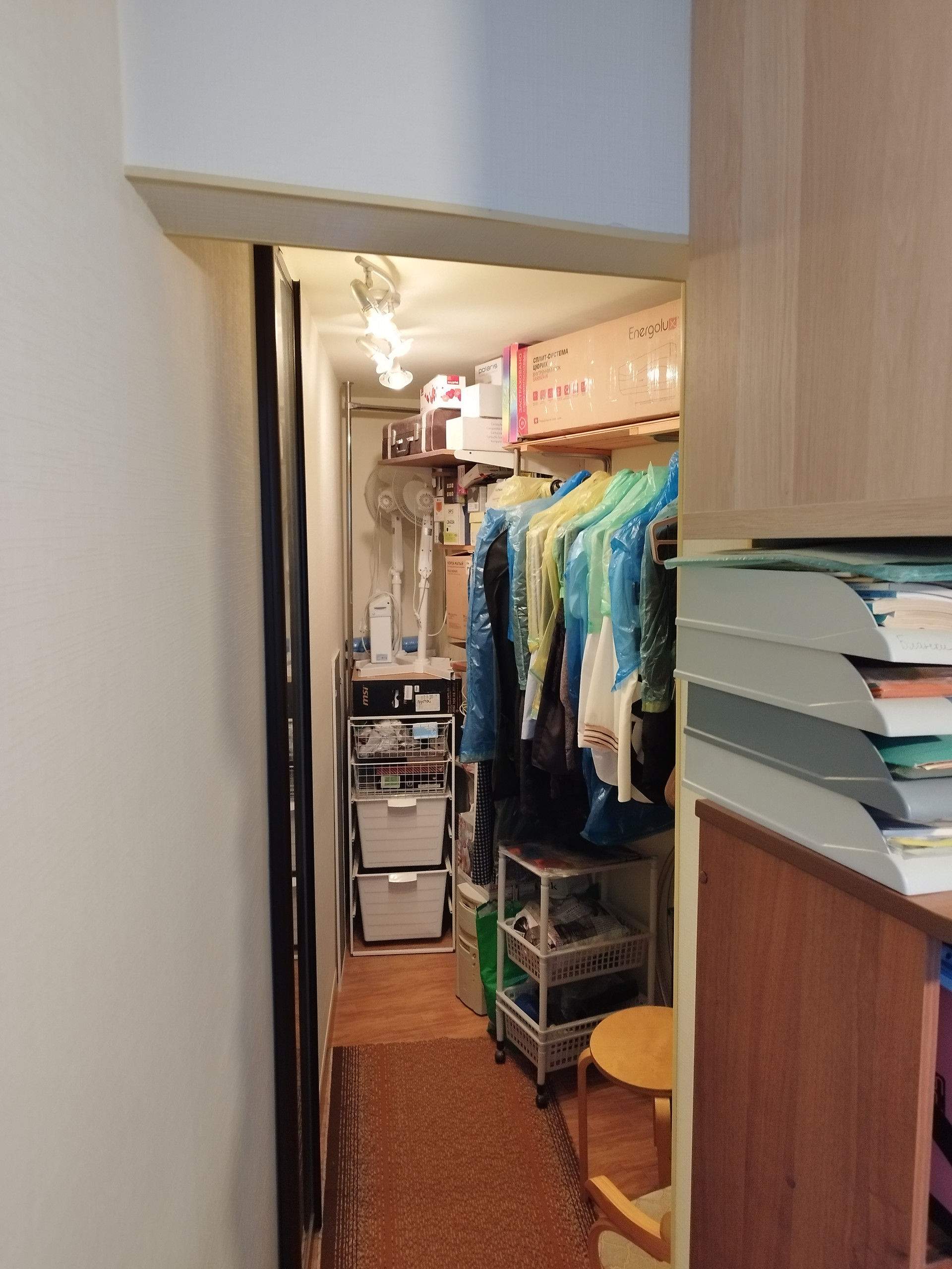 Закрытый тамбур на 4 квартиры. Есть свой шкаф для хранения.