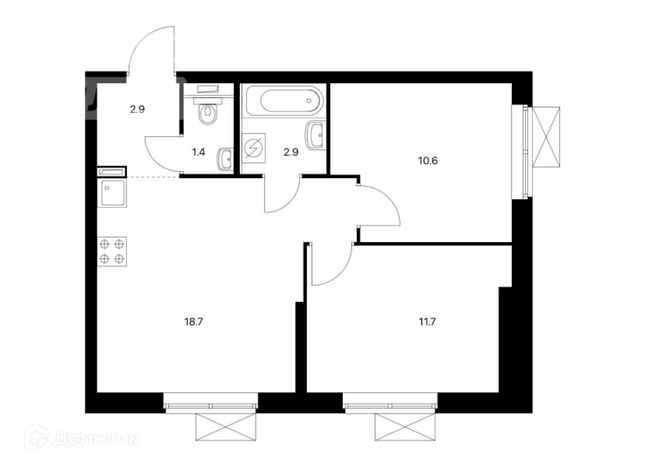 Жилая площадь 22.4 м2
