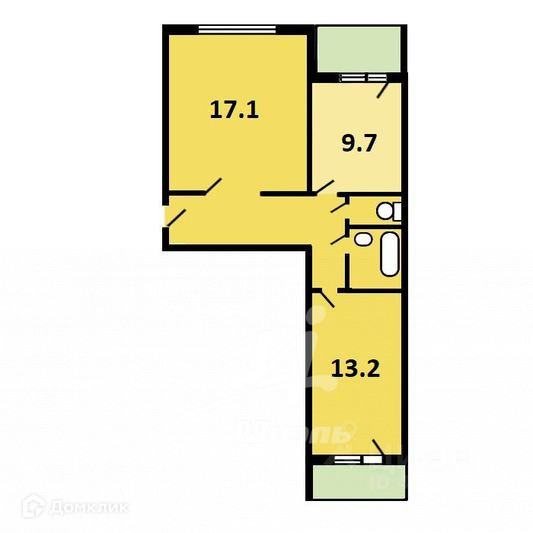 Жилая площадь 30.3 м2