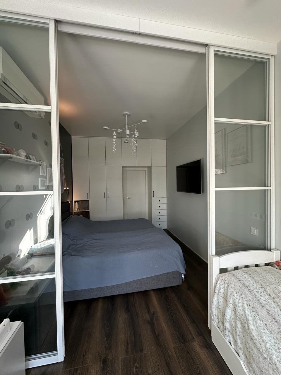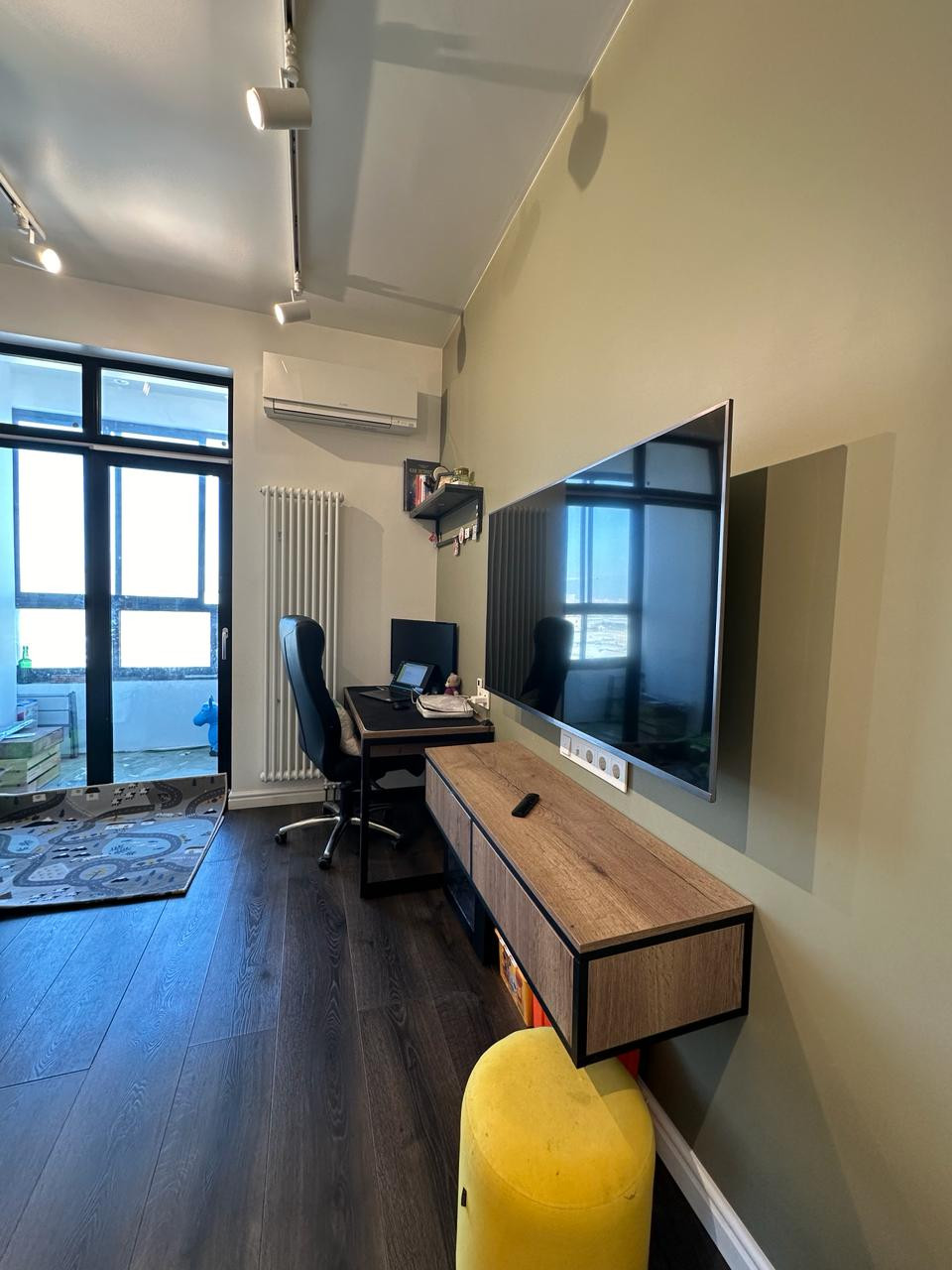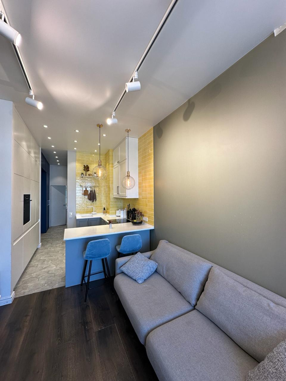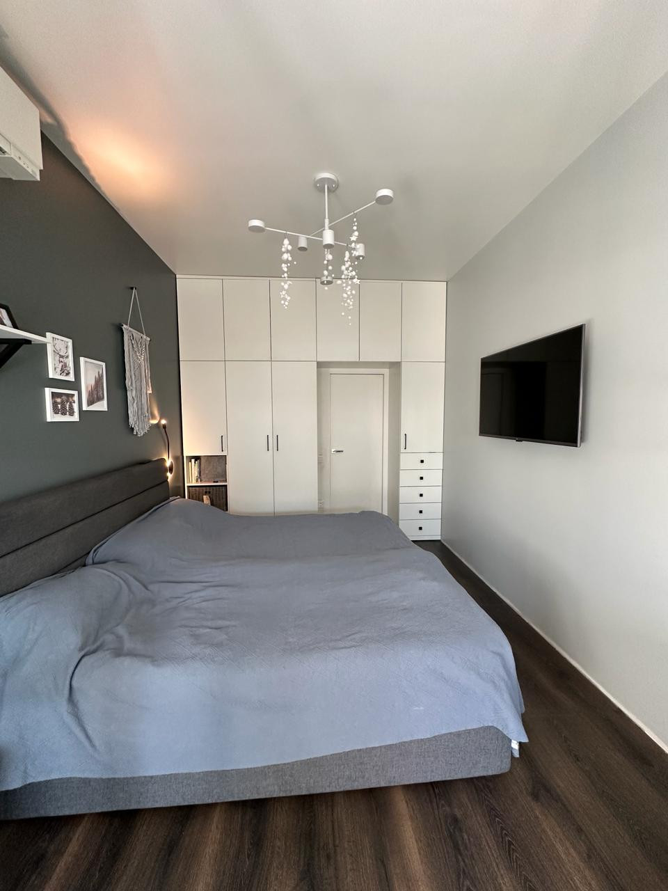 В квартире выполнен евроремонт по дизайнерскому проекту с применением дорогих отделочных материалов:  шумоизоляция, заменены батареи, трубы, разводка электричества. Установлена сплит система Митсубиши. В санузле испанская плитка, дорогая сантехника. Установлена система от протечек. Встроенный кухонный гарнитур с подсветкой, столешницей и барной стойкой из камня. Встроенная техника: холодильник, духовой шкаф, варочная поверхность, посудомойка, микроволновка от известных мировых брендов.