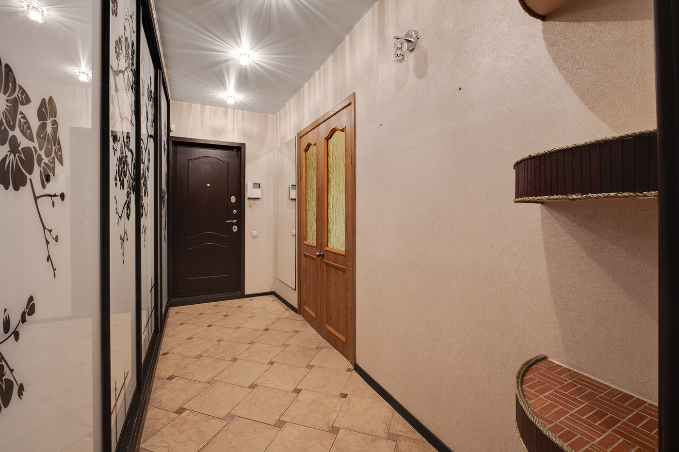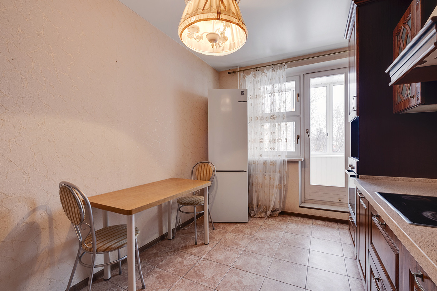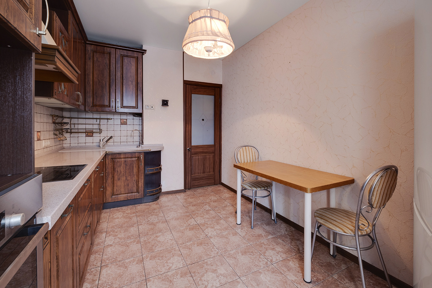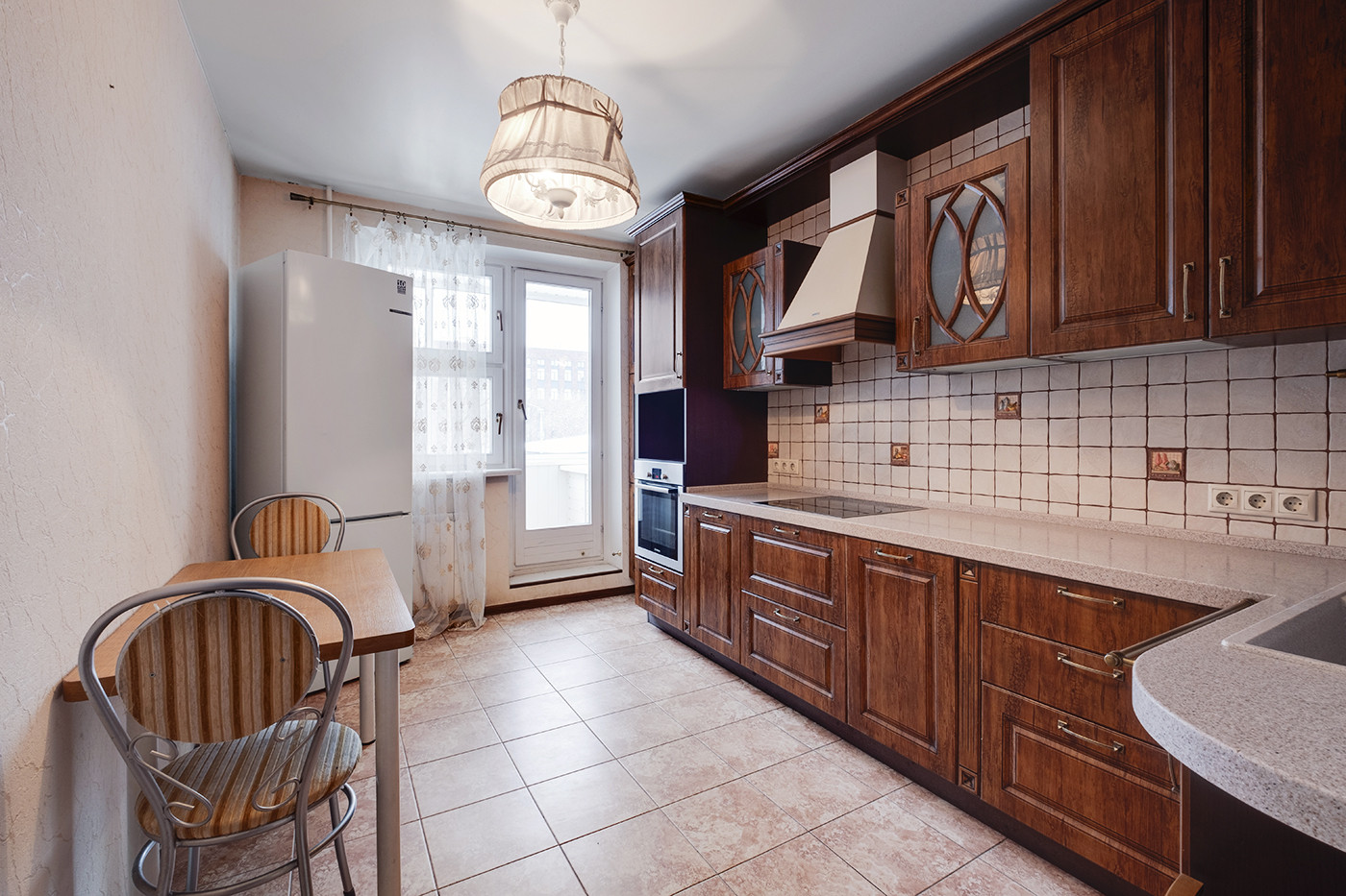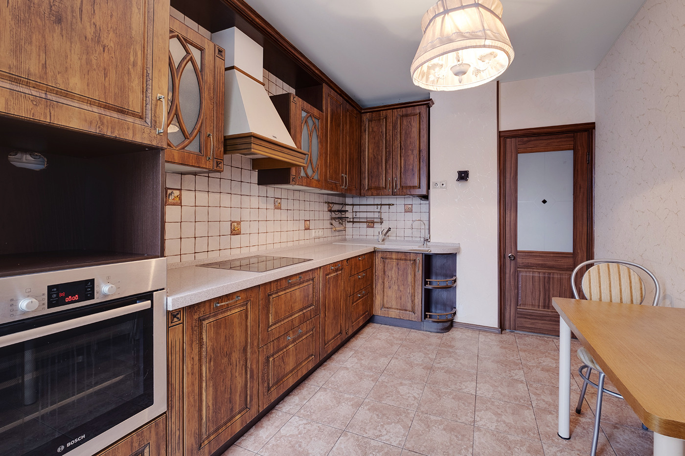 Для хранения вещей в квартире 2 вместительных встроенных шкафа-купе. Кухня оборудована гарнитуром в классическом стиле и качественной техникой фирмы Bosch. В стоимость входят: варочная панель, вытяжка, духовой шкаф и современный двухкамерный холодильник. Посудомоечная машина Electrolux.