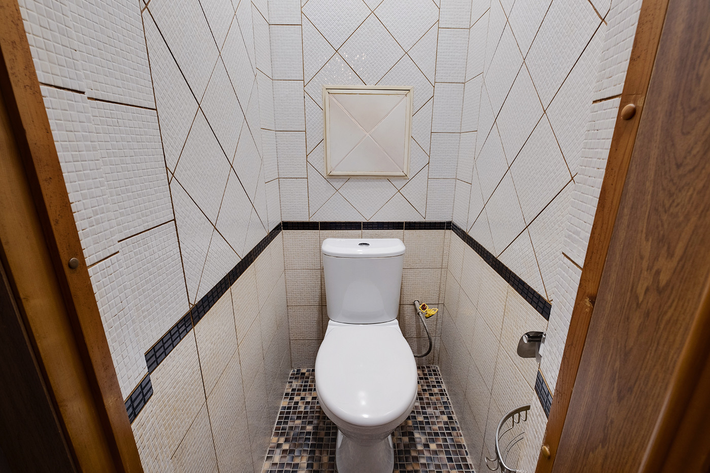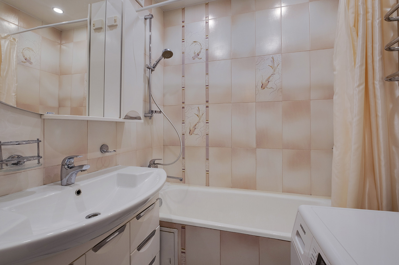 Санузел раздельный, ванная комната и туалет в плитке. Бонусом остается стиральная машина Samsung на 6 кг.