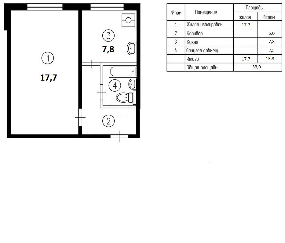 Общая площадь 33 м2