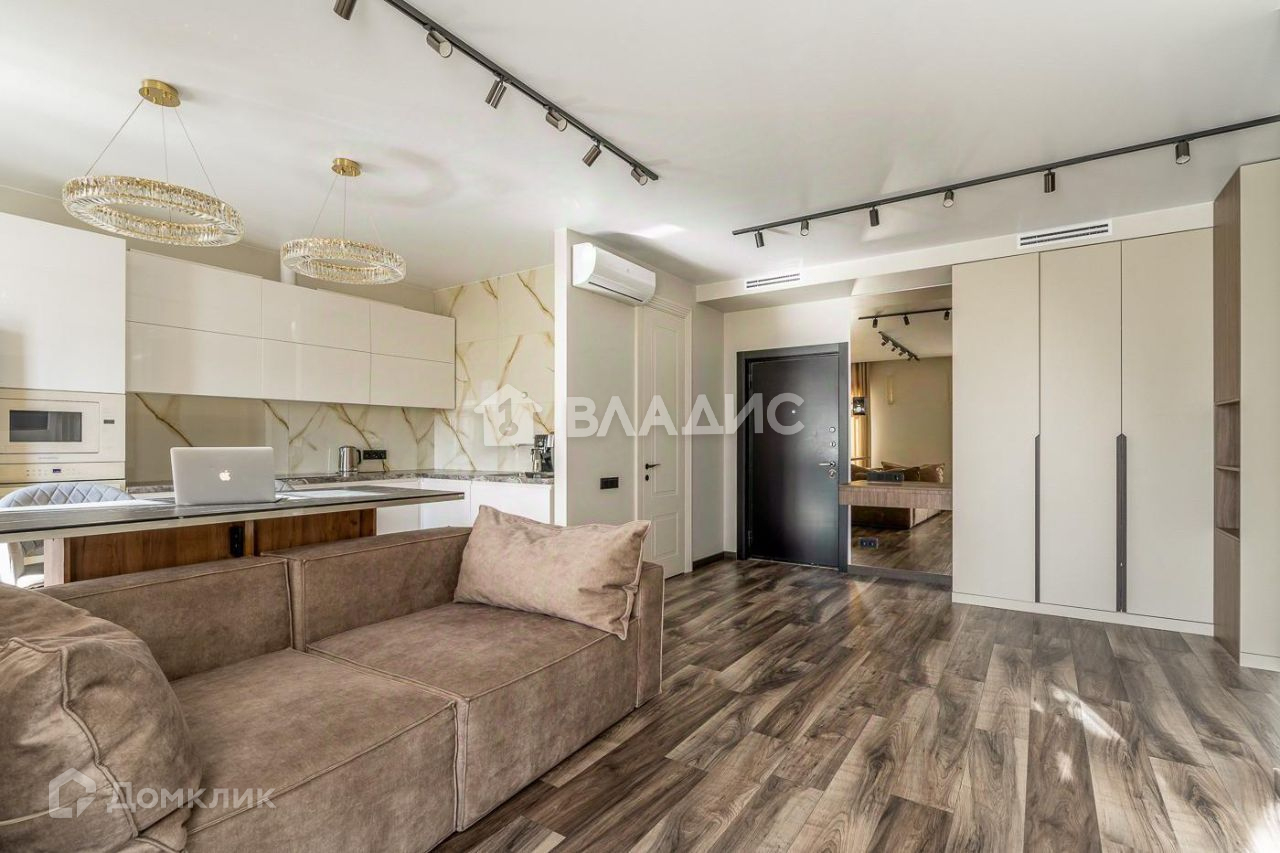 Бытовая техника нормального качества - Electrolux (Европа), все приобретено до 2022 года. В доме есть магазины "Вкус Вилл Мини", "Магнит", аптека и "ВинЛаб". Планировка квартиры: одна спальня площадью 14 кв.м и большая кухня-гостиная. Разнообразное освещение по всей квартире, дизайнерские люстры и подсветки. Показы возможны только после 16:00. В собственности более 3 лет. Полная стоимость указана в договоре, оплата через банковский аккредитив.