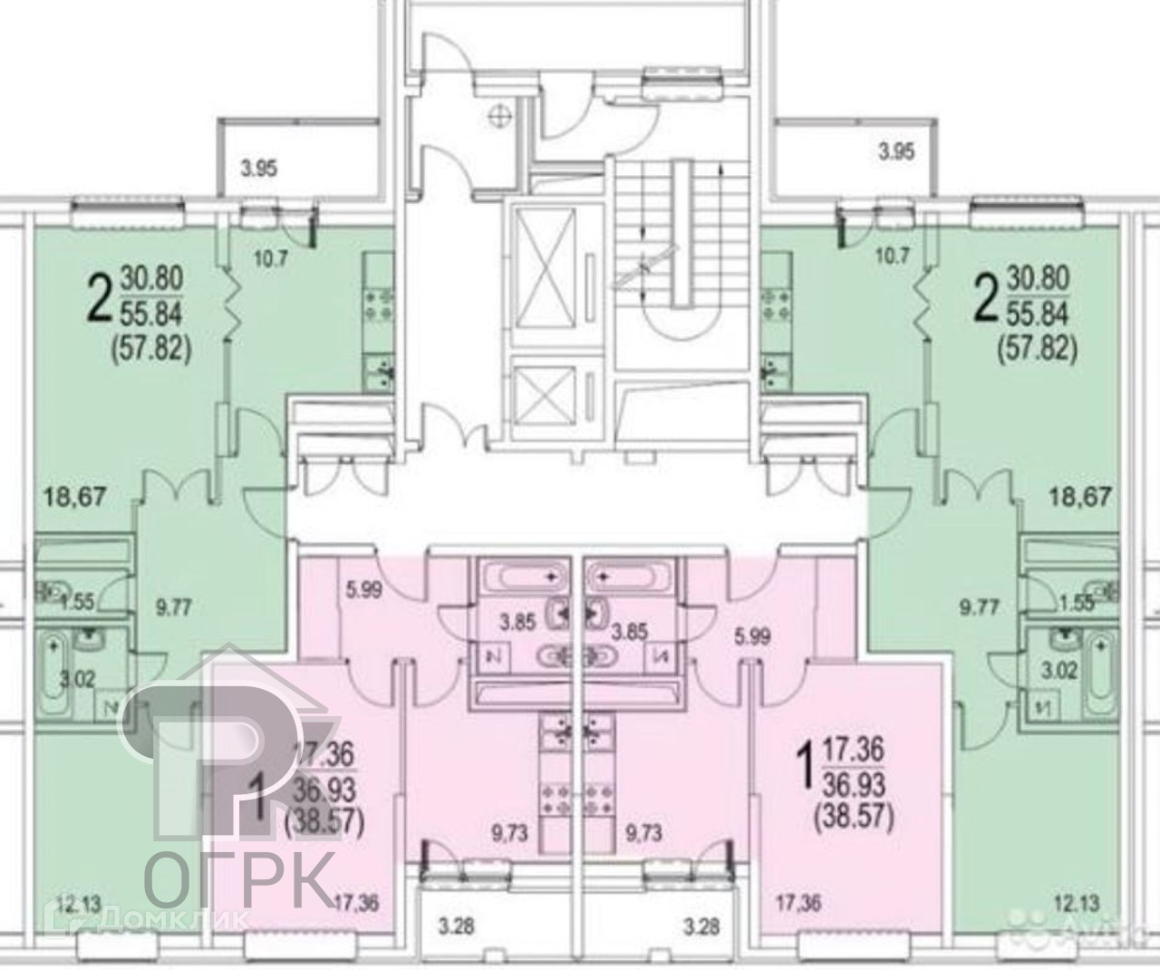 Общая площадь 57.8 м2