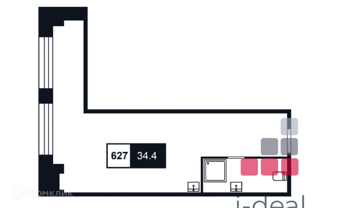 Общая площадь 34.4 м2