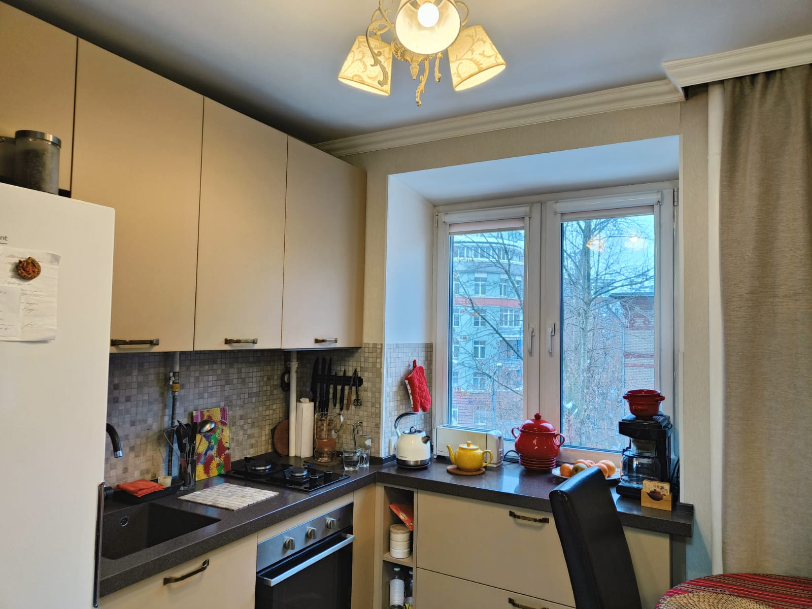 Кухня-столовая, гарнитур от фабрики Стильный кухни с каменной столешницей, спальная комната с гардеробной, везде новые стеклопакеты, включая балкон. Интернет-стекловолокно МТС. Отдельный тамбур на две квартиры с новыми металлическими дверями. Чистый, с новым ремонтом и металлическими дверьми подъезд.