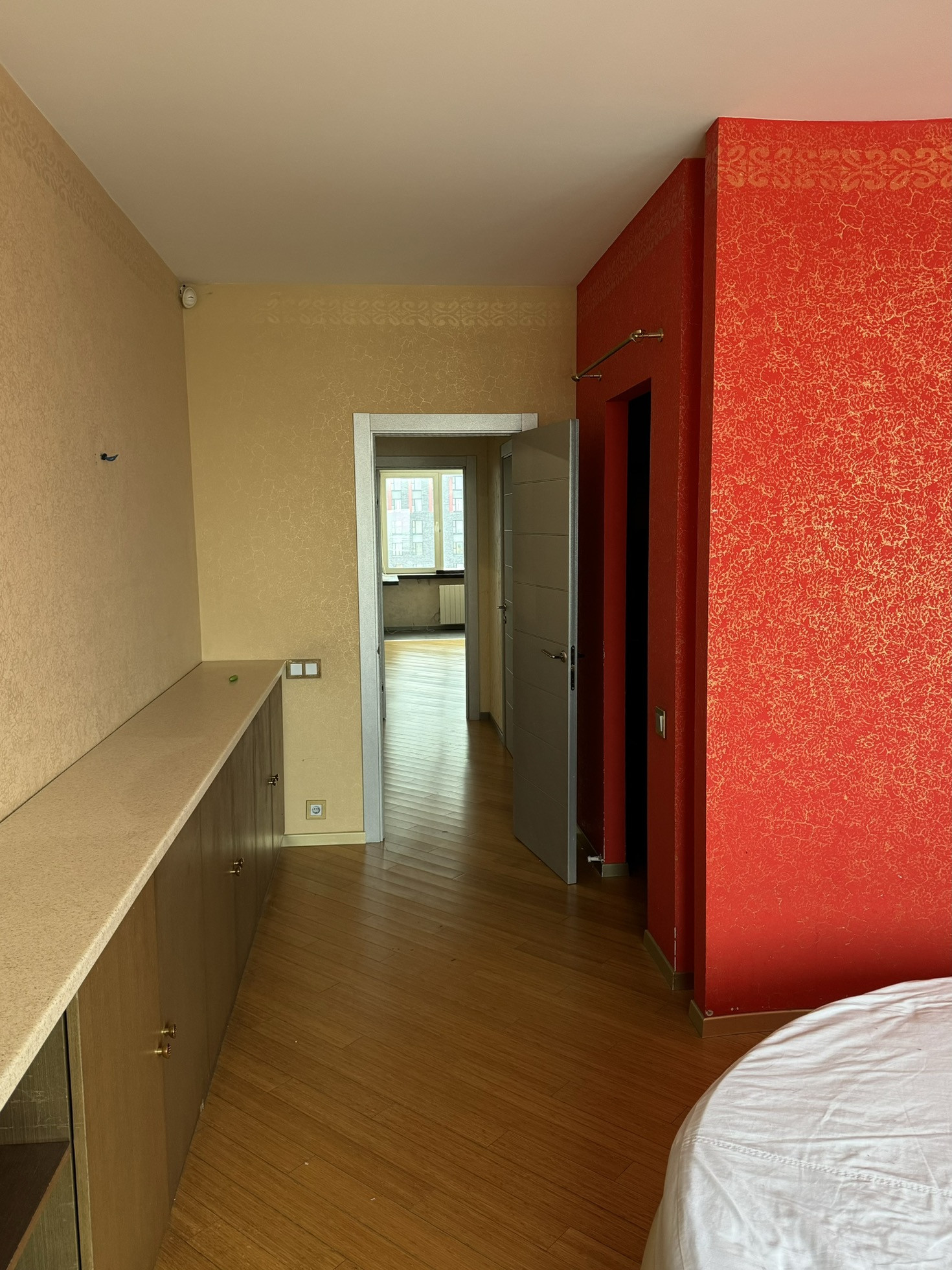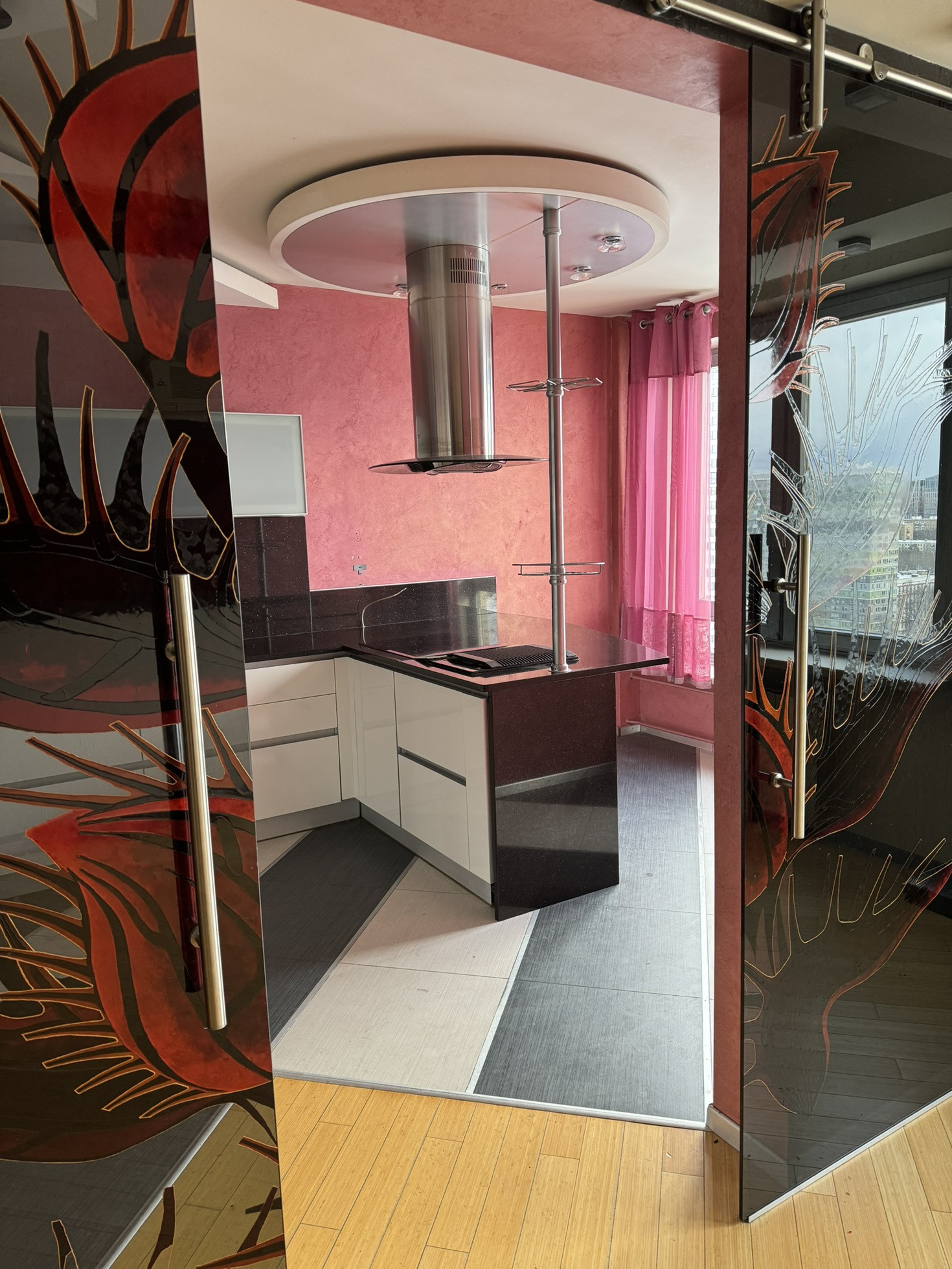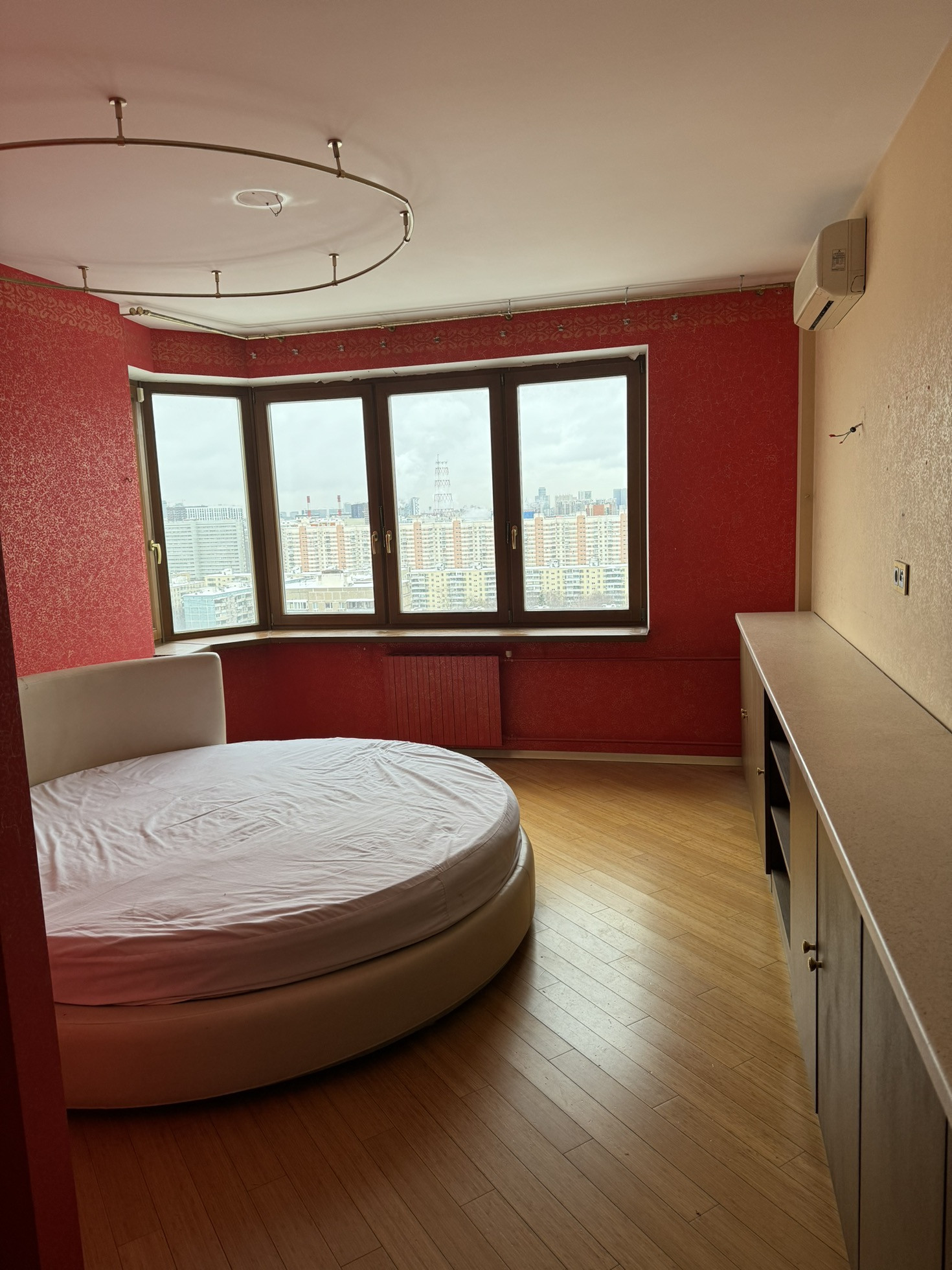 Практичная планировка квартиры с разделением раздвижными дверьми гостевой и жилой зон. Светлые комнаты с большими окнами. Вид из окон на бульвар и Живописный мост, с одной стороны, и на комплекс Москва-Сити, с другой стороны.