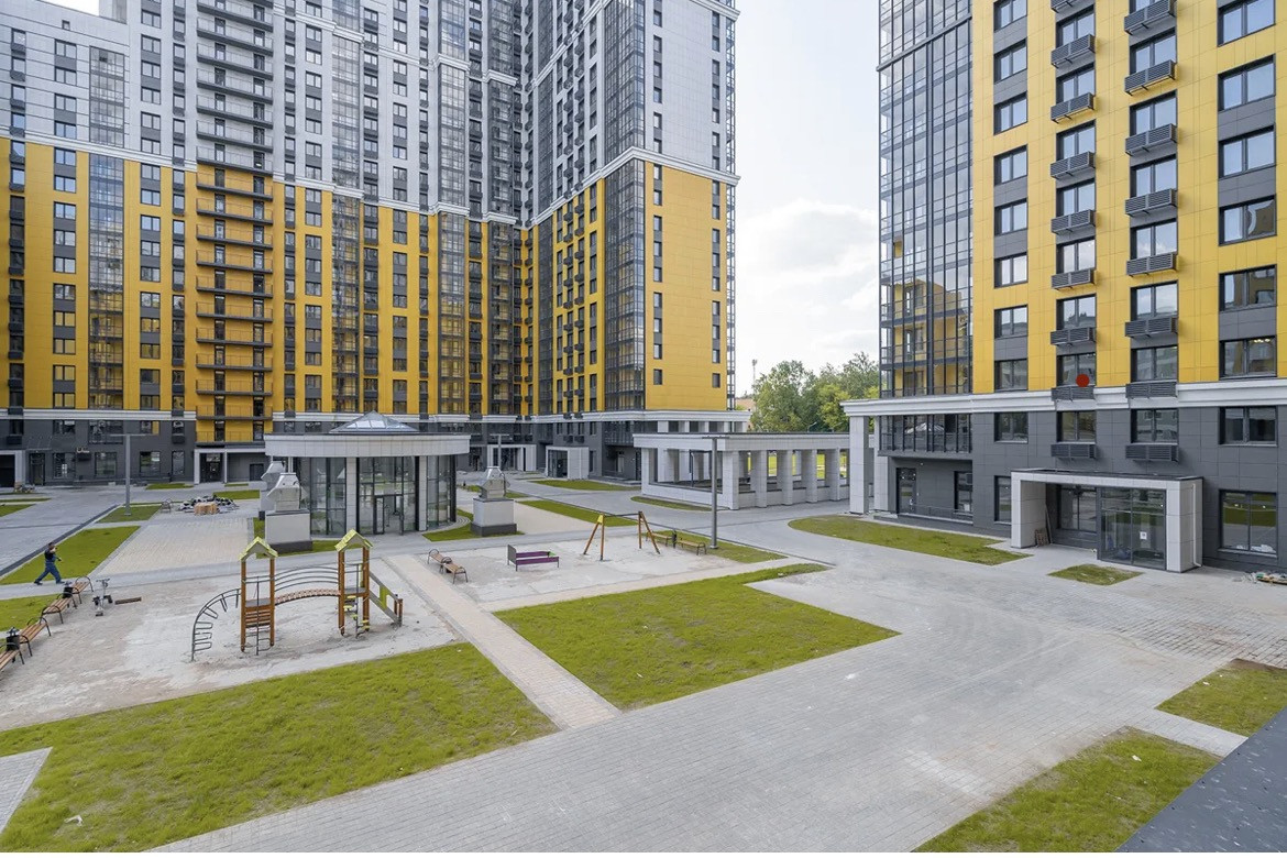 В вестибюлях жилой части имеются технические помещения и комнаты консьержа. На территории жилого комплекса созданы детские и спортивная площадки, а также площадка для отдыха.