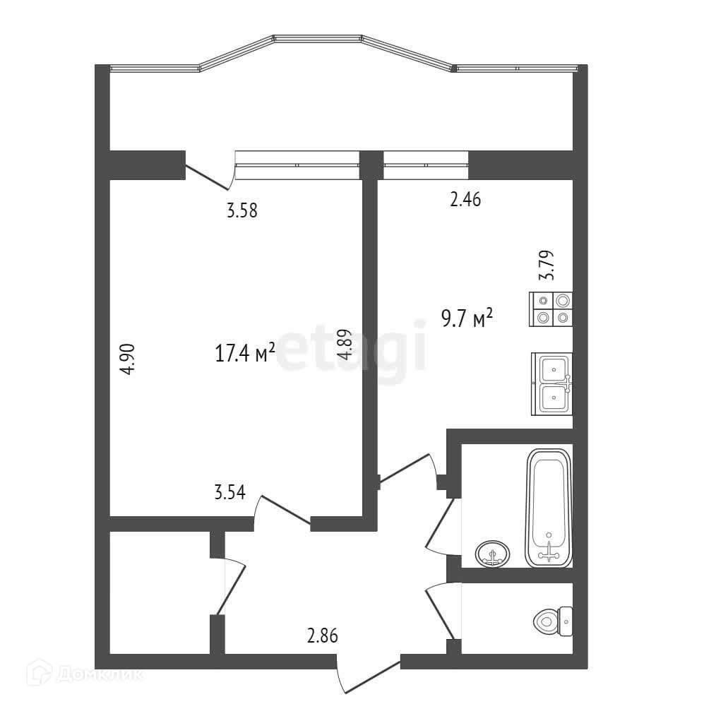 Балкон, лоджия 1 балкон