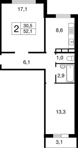 Общая площадь 52.1 м2