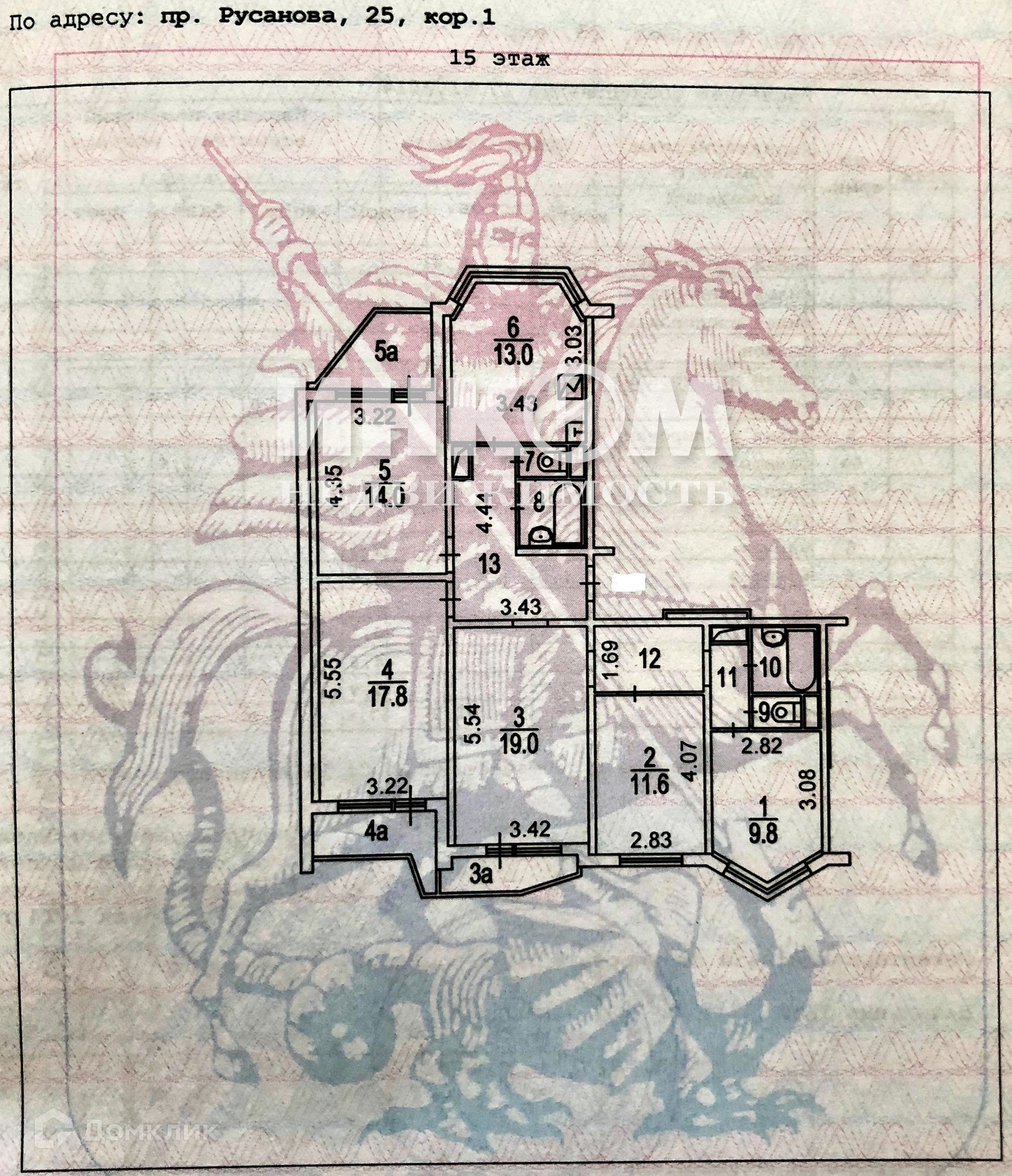 5-комнатная квартира, 109.6 м2, этаж 15 / 17, на продажу в Москве, проезд Русанова, 25к1