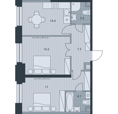 Количество комнат 2