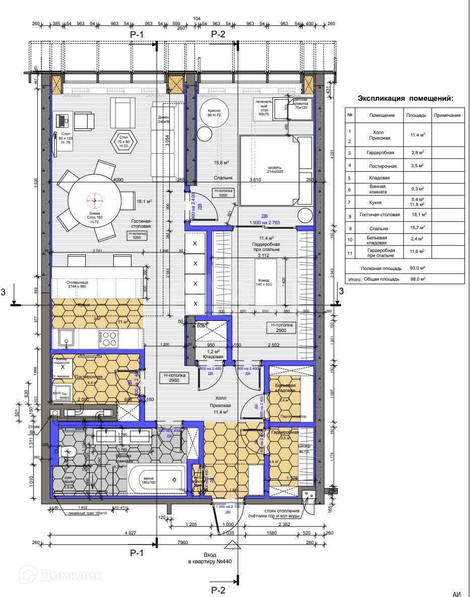 Общая площадь 94.3 м2
