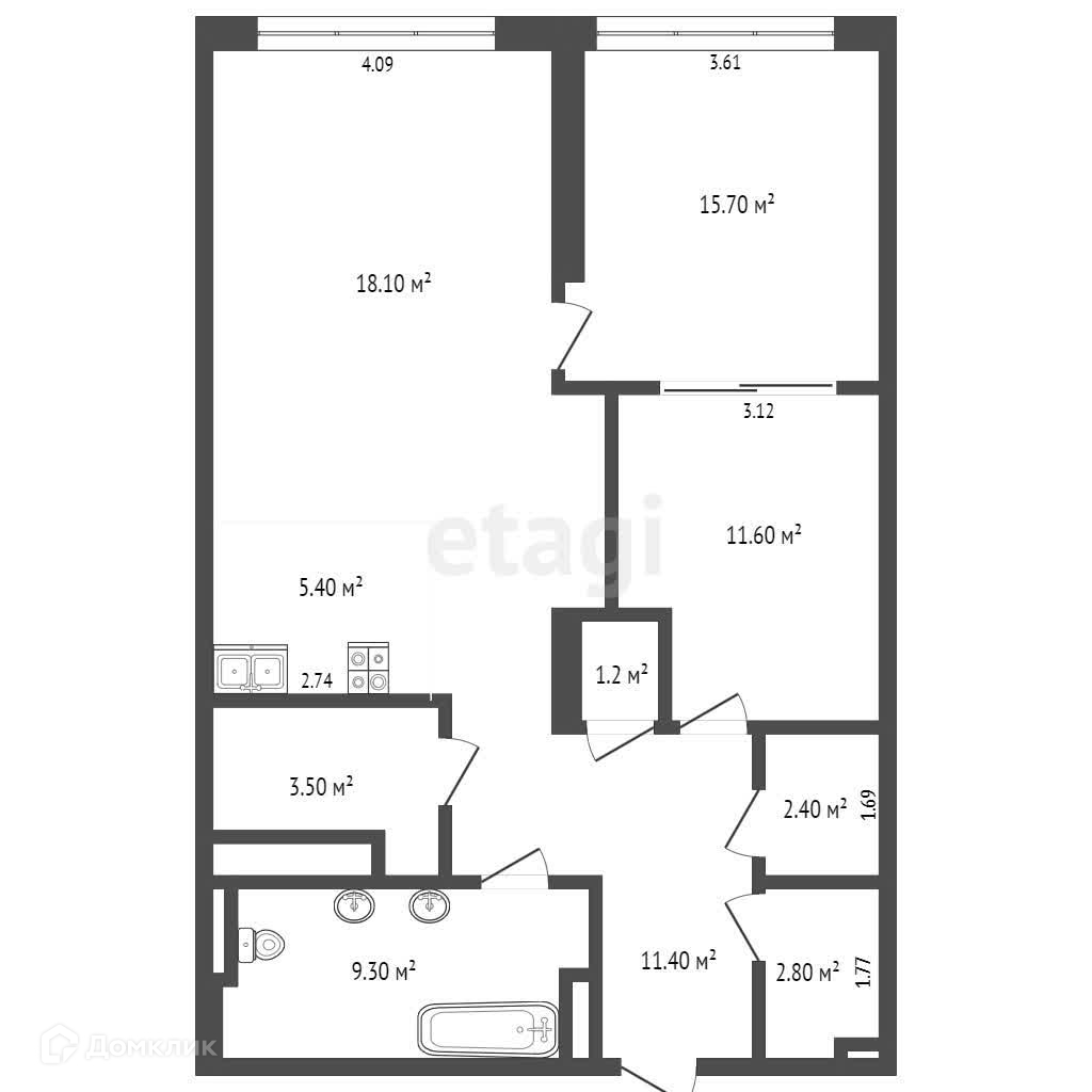 Площадь кухни 18.1 м2