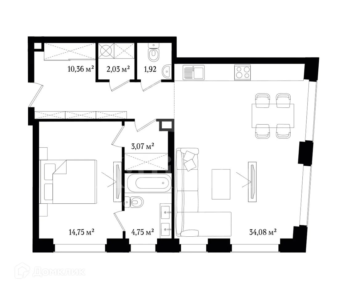 Общая площадь 70.96 м2