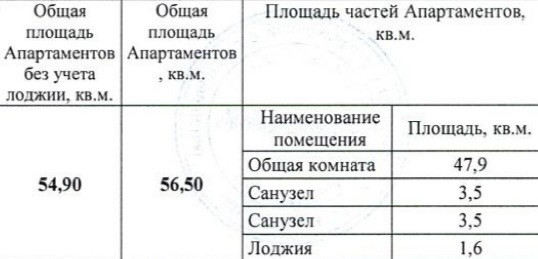 Общая площадь 56.5 м2