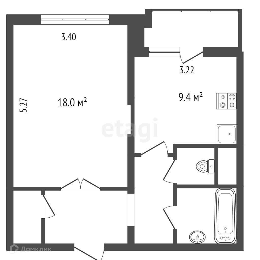 Балкон, лоджия 1 балкон