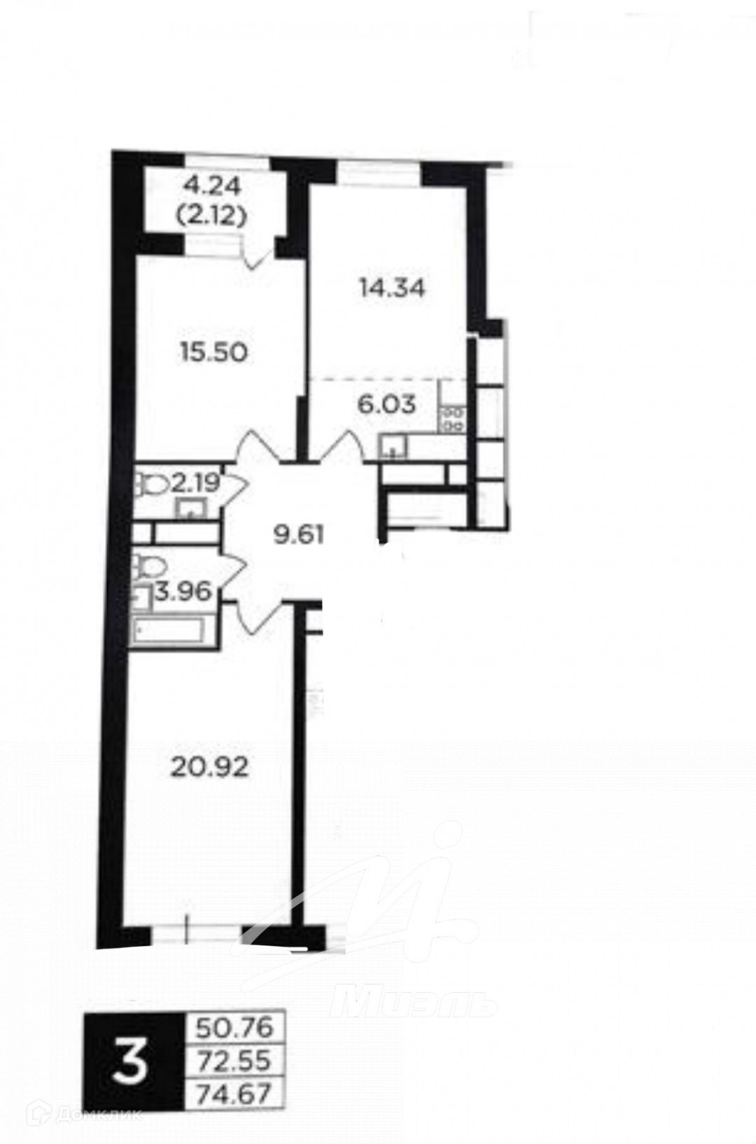 Количество комнат 3
