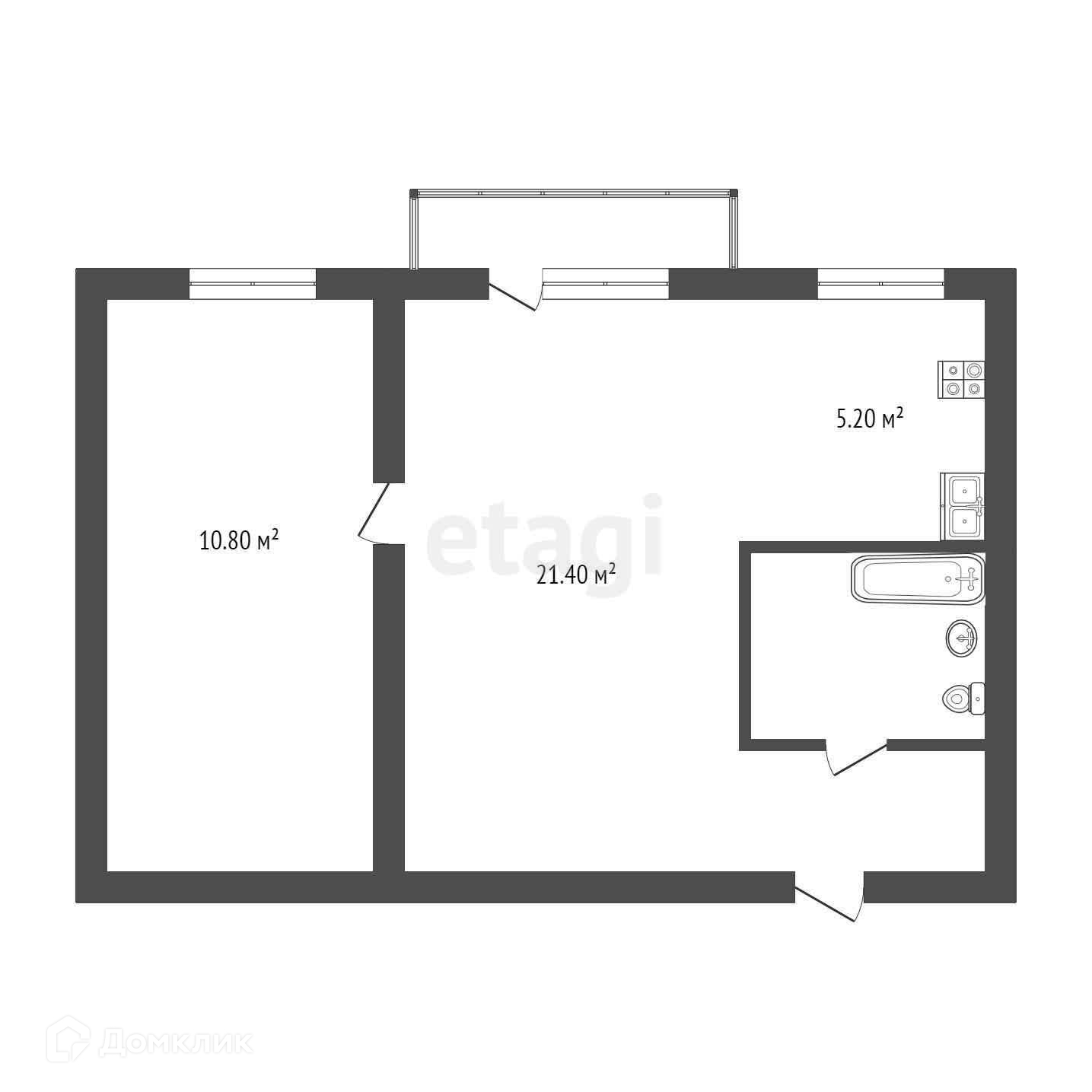 Общая площадь 44.4 м2