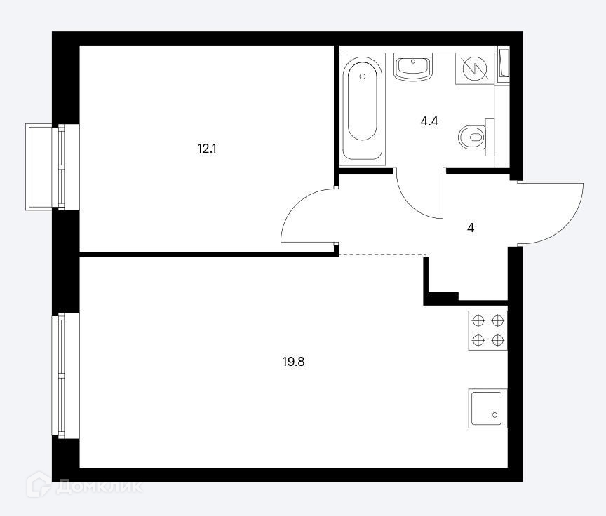 Балкон, лоджия 1 балкон