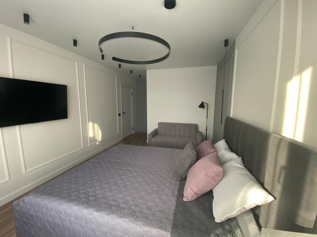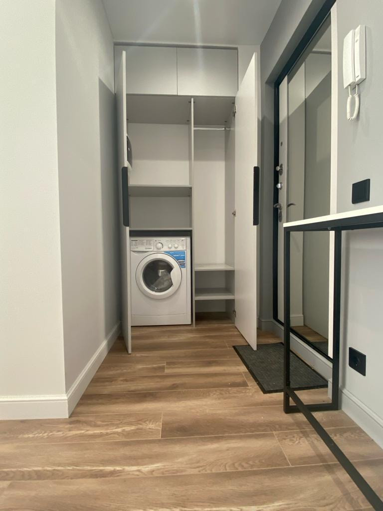 Квартира полностью  укомплектована  новой мебелью и техникой( кровать, диван, тв, стиральная машина, посудомоечная машина, кондиционер). Спальня с гардеробной, диваном, кроватью и рабочее  место у окна. В квартире еще никто не жил. Квартира светлая и уютная.