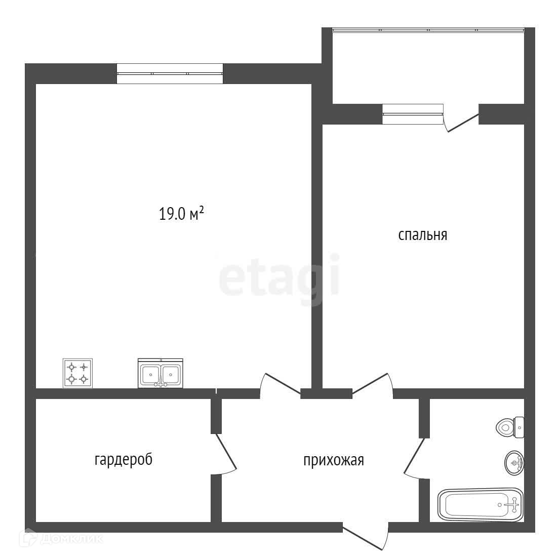 Площадь кухни 19 м2