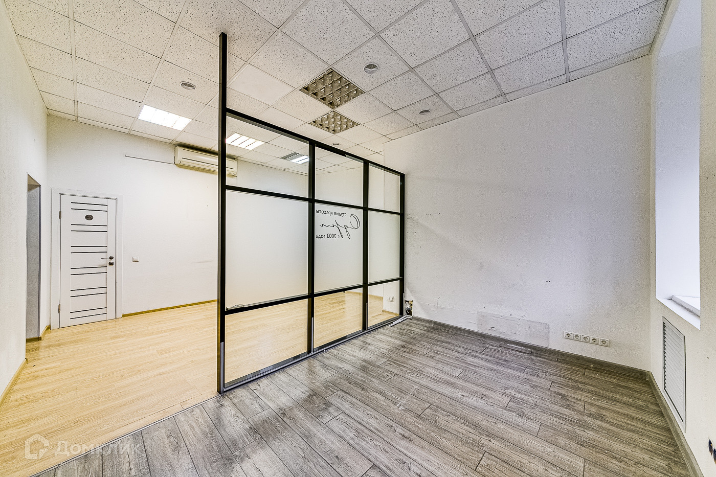 В помещении выполнен косметический ремонт, установлены кондиционеры, установлена стеклянная перегородка, которая может разделять рабочую зону и зону отдыха. Окна выходят на садовое кольцо.