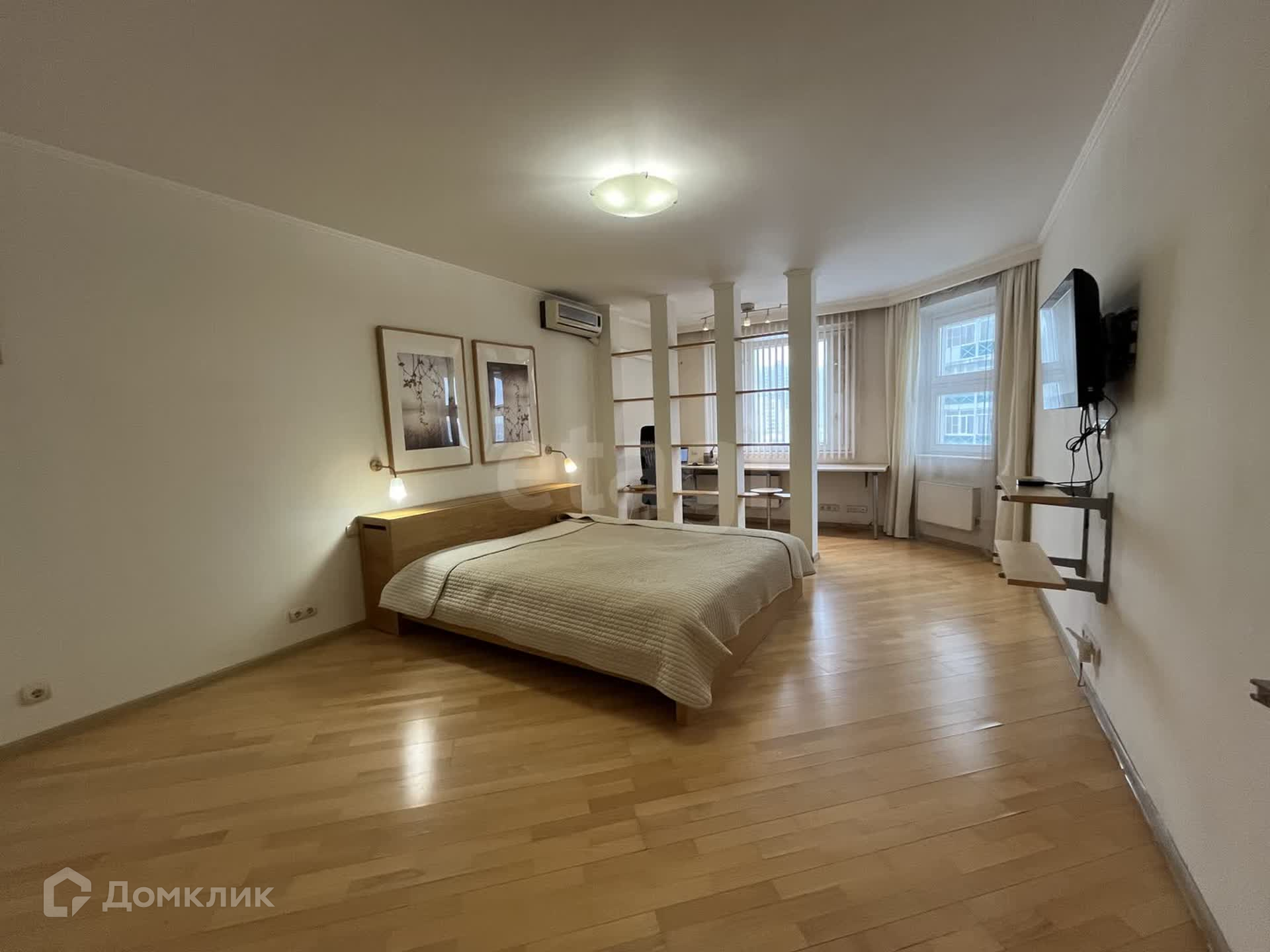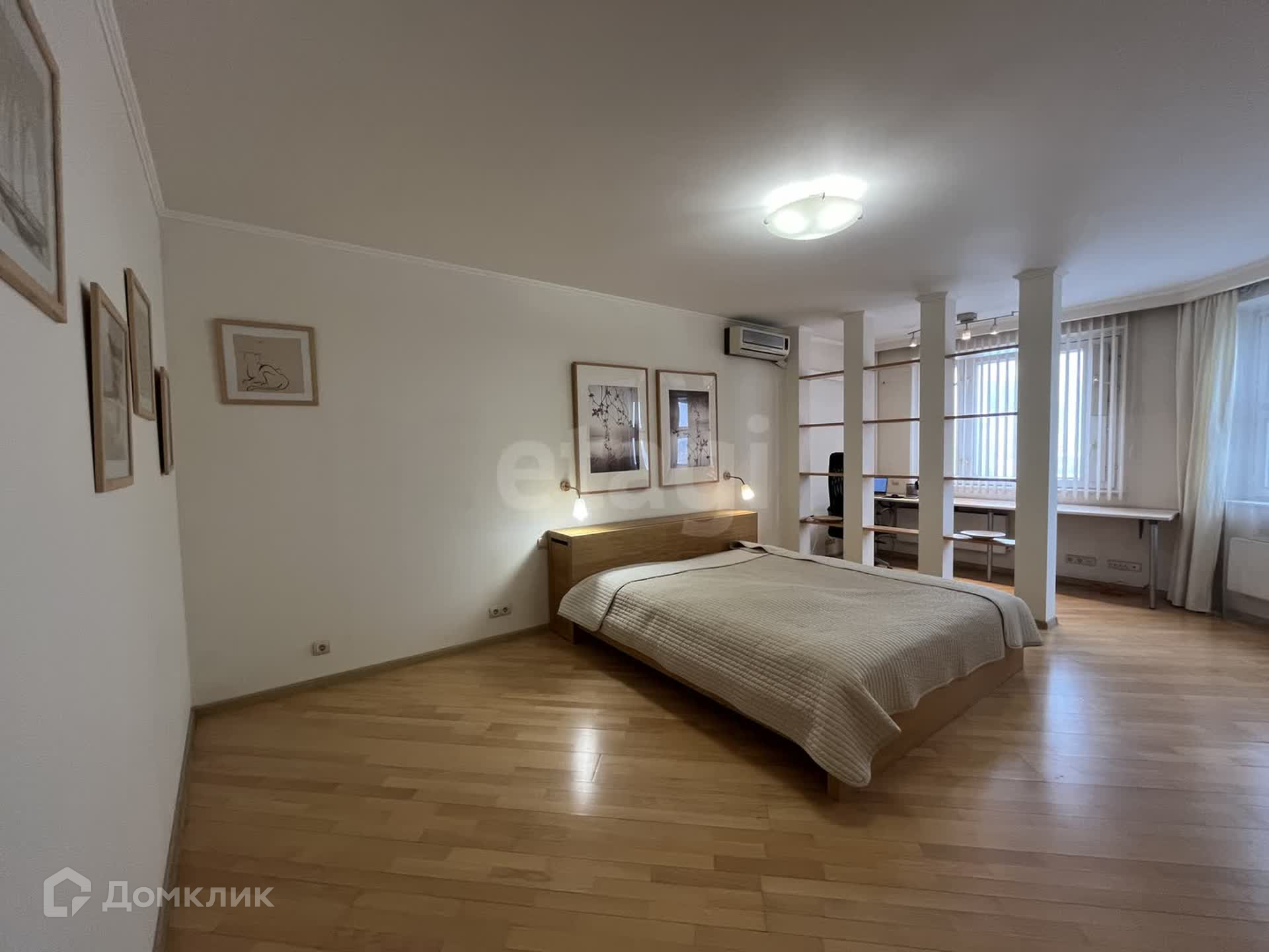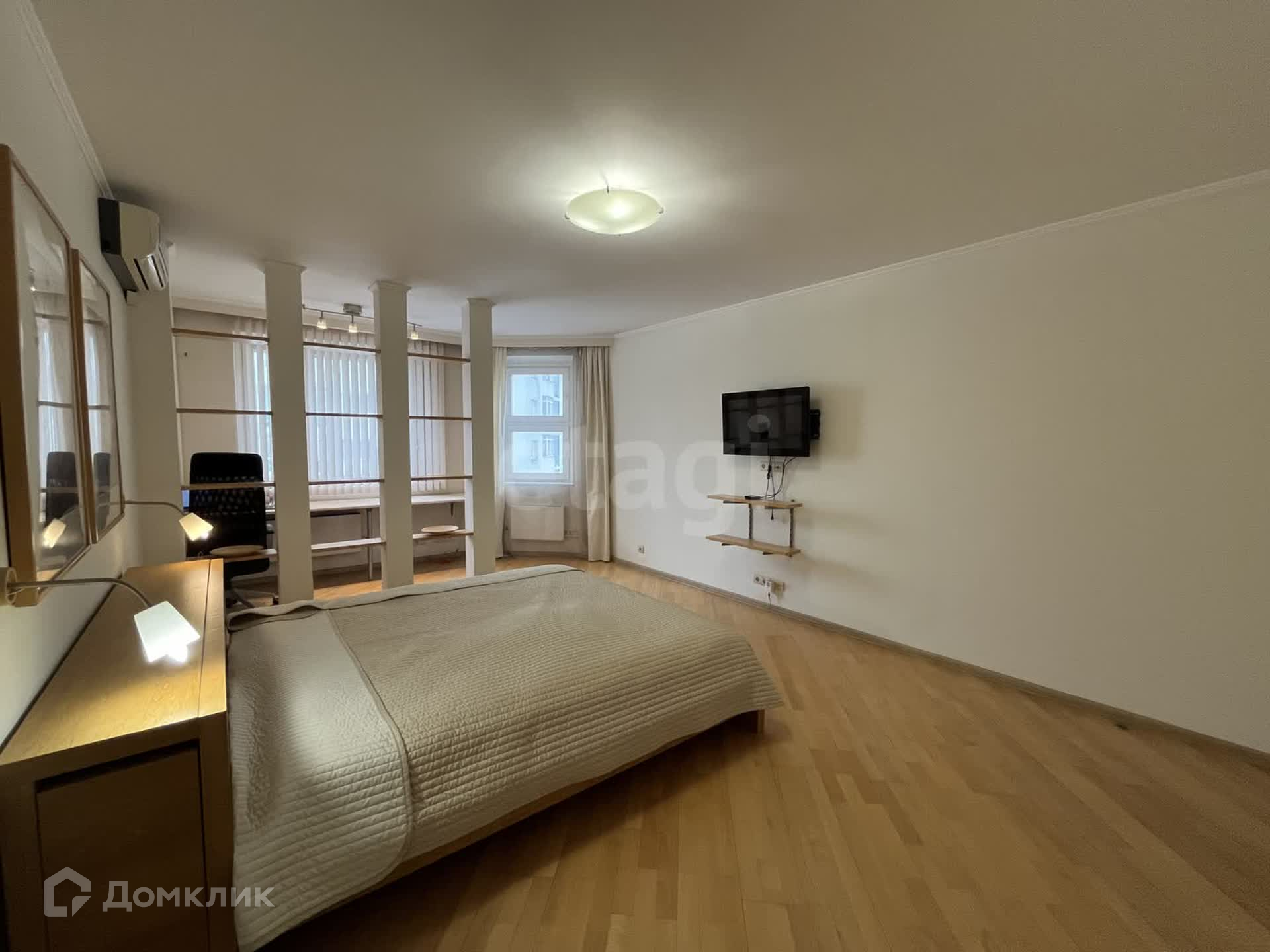 Жилая зона площадью 26 м² разделена на рабочую и спальную зоны. В спальне установлена двуспальная кровать от Икеа с выдвижными полками и телевизор Sony с приставкой Apple TV. Для Вашего удобства подключен высокоскоростной интернет и установлен кондиционер.