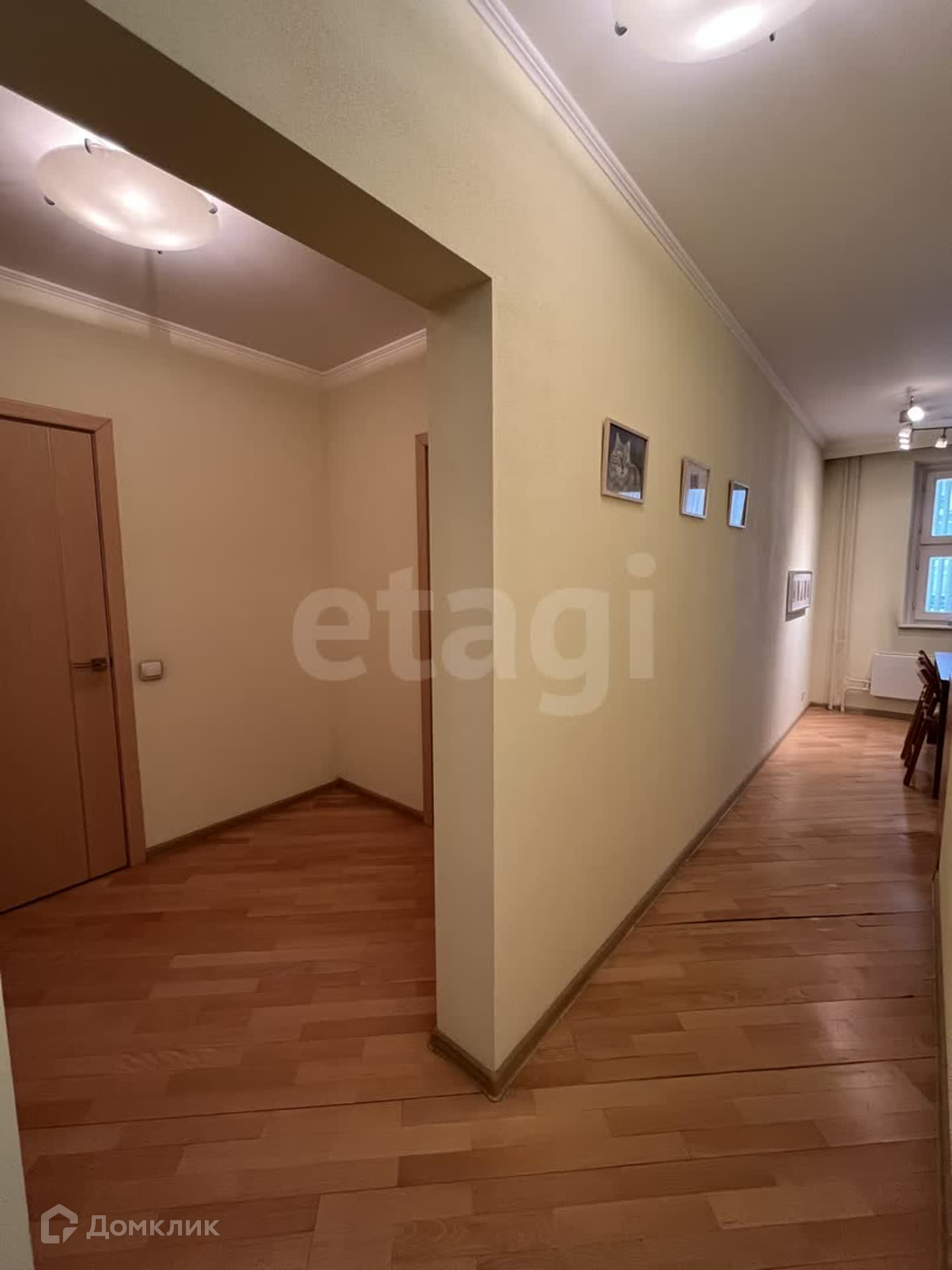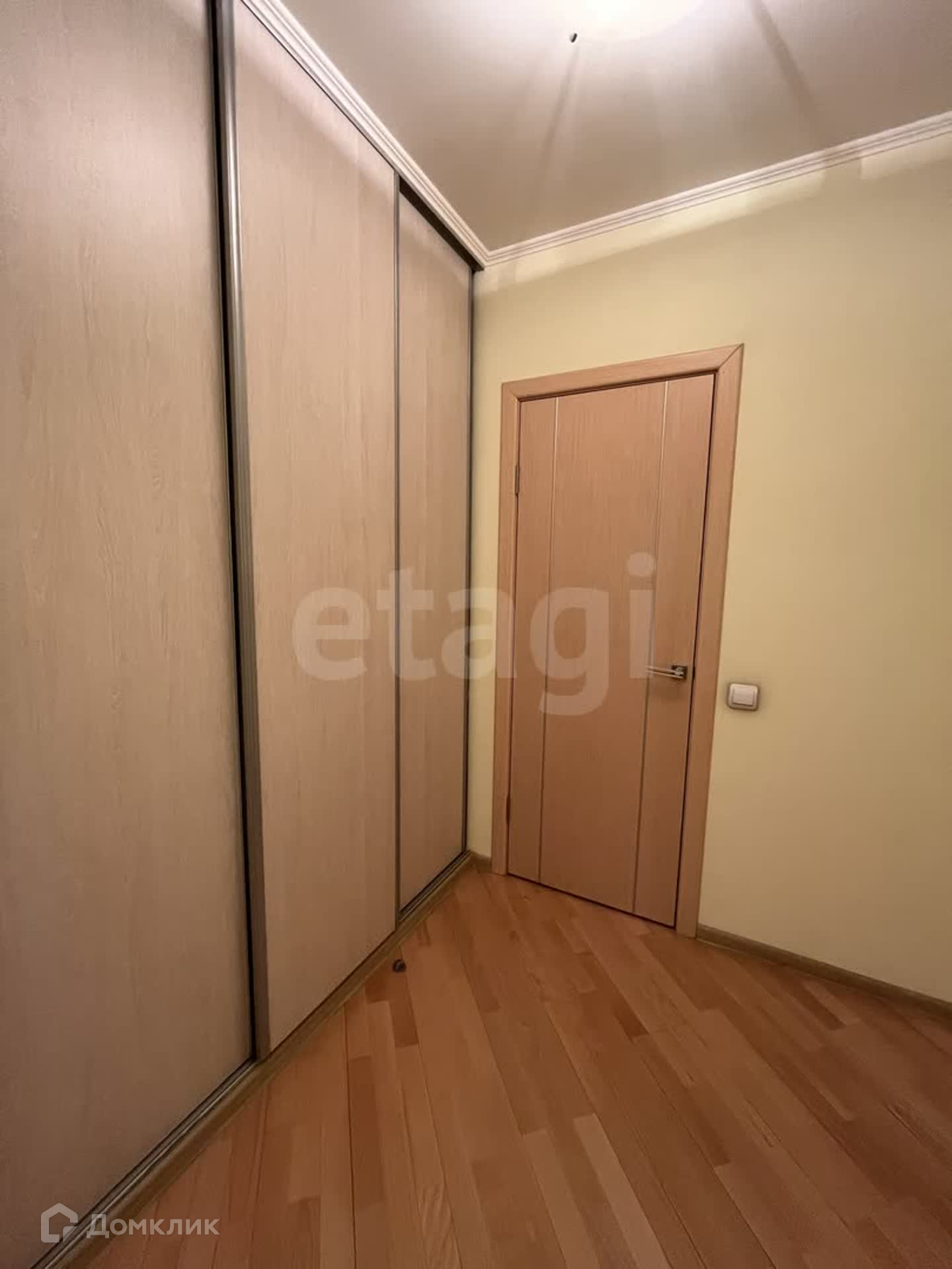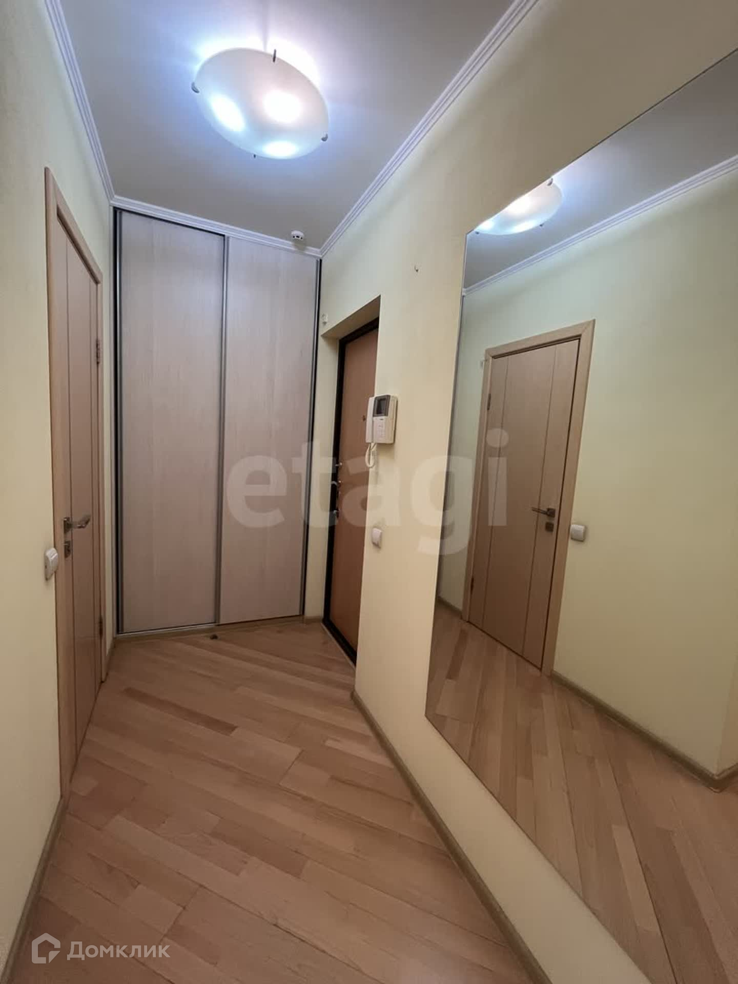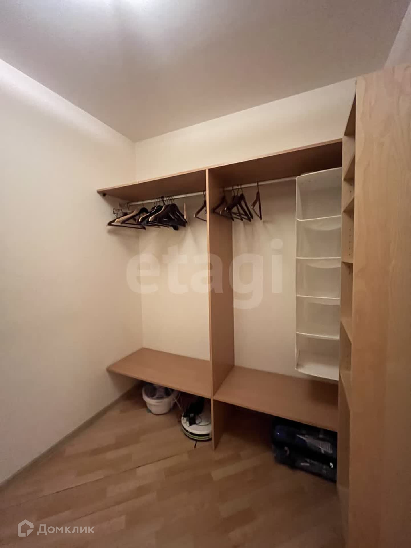 В квартире также есть просторная гардеробная с системами хранения и встроенные шкафы-купе в коридоре.