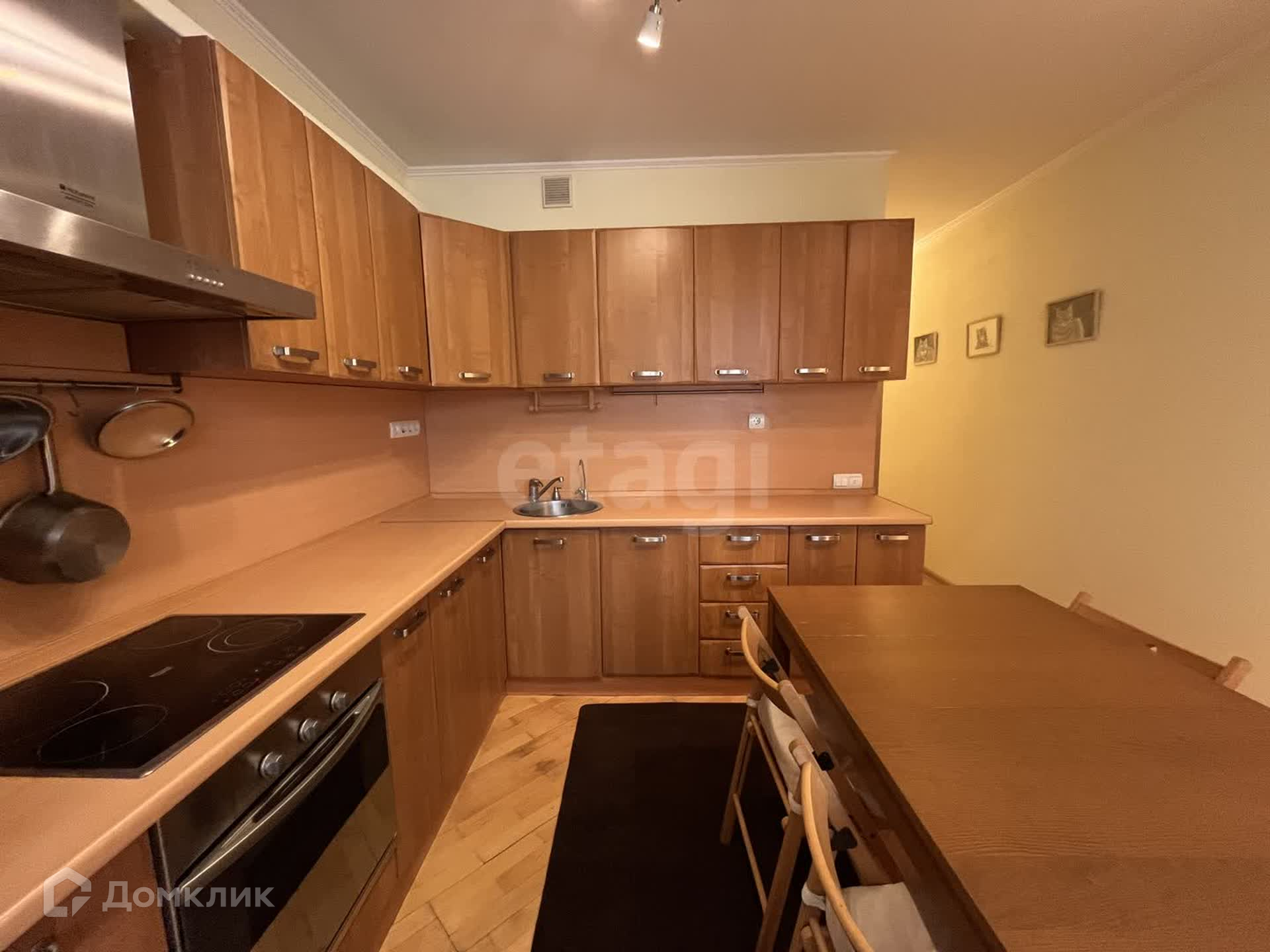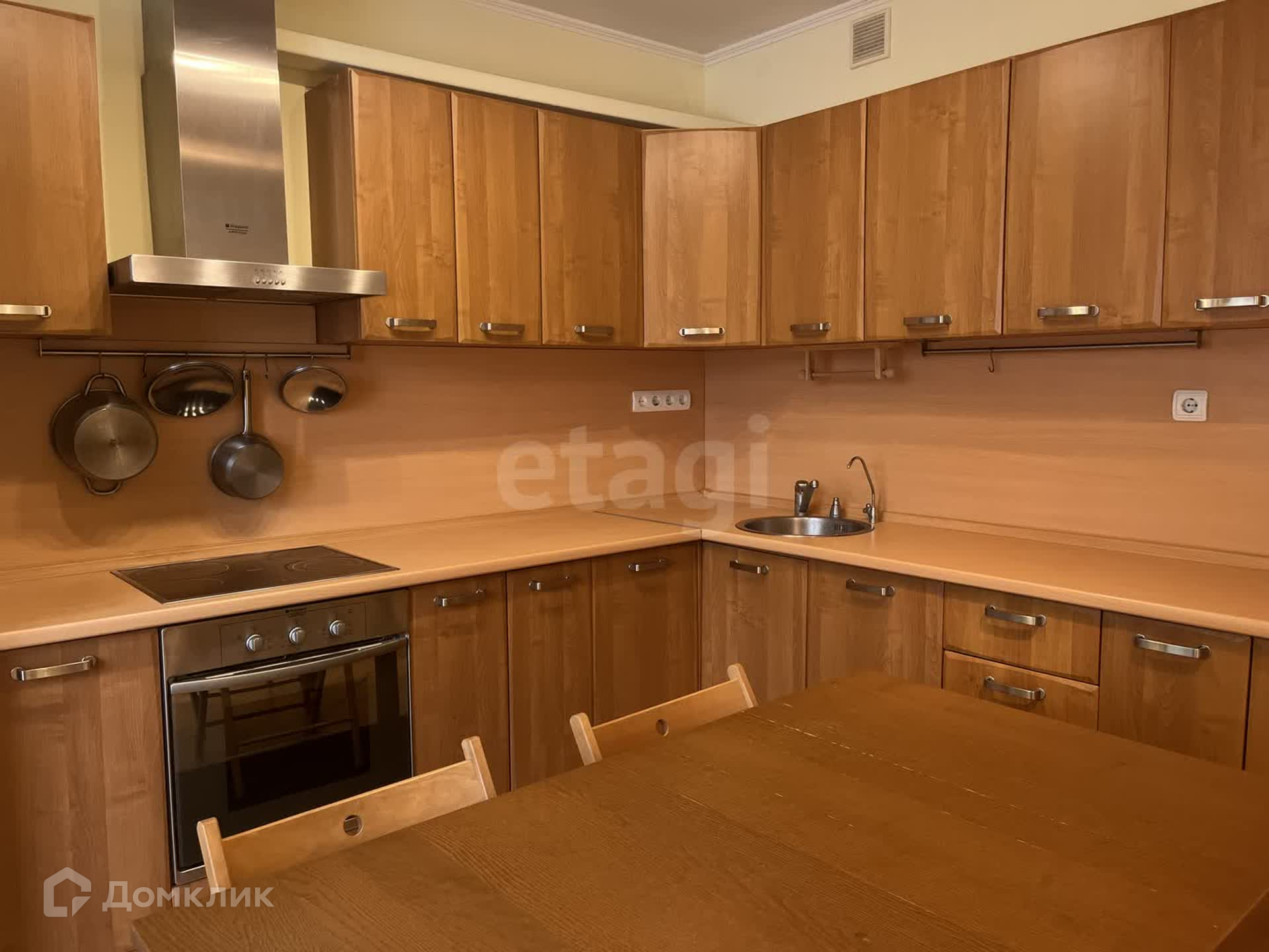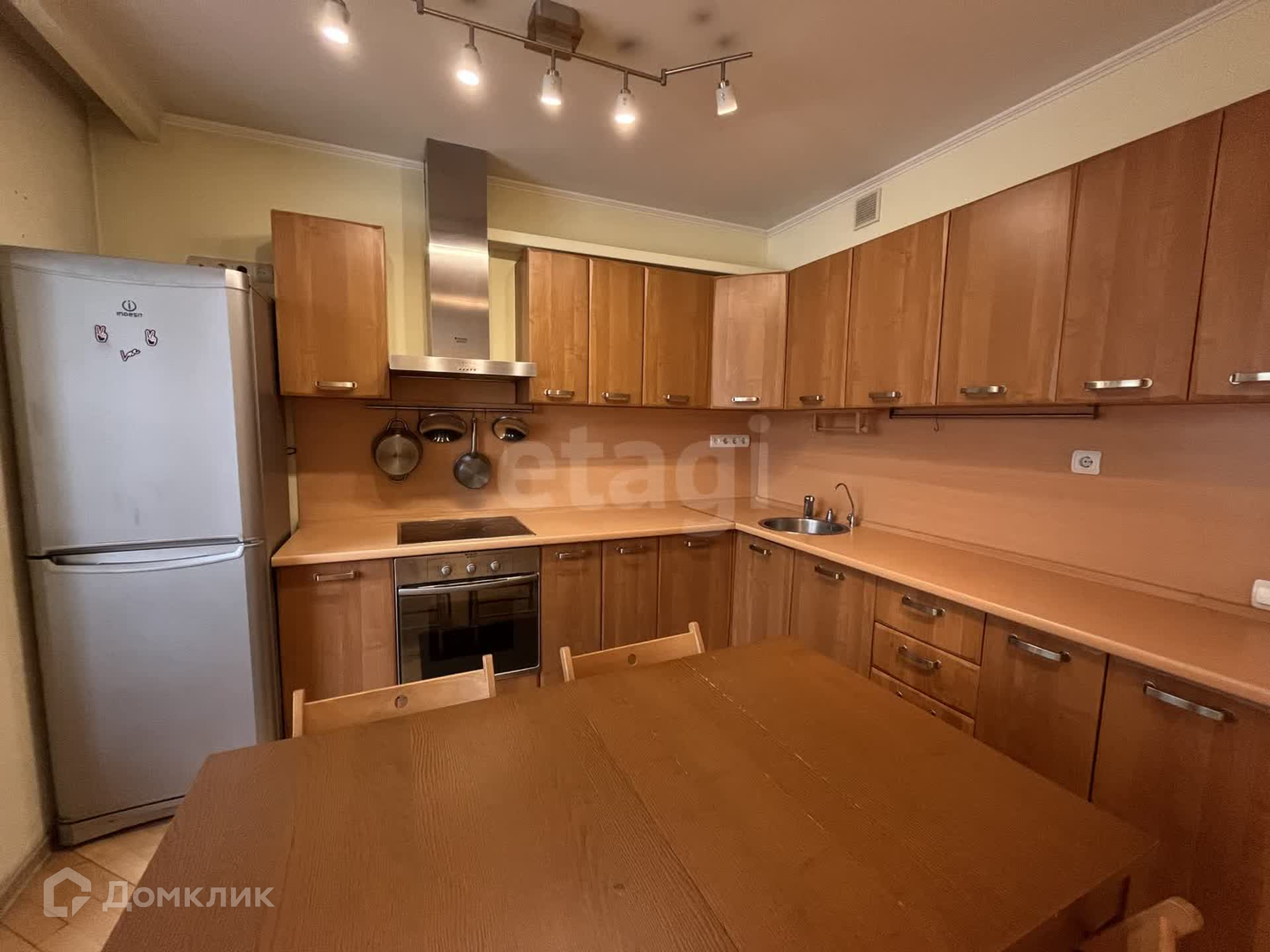 Кухня площадью 11.3 м² оборудована встроенным гарнитуром, электроплитой, духовкой и посудомоечной машиной Ariston, а также двухкамерным холодильником Indesit. Установлен  фильтр.