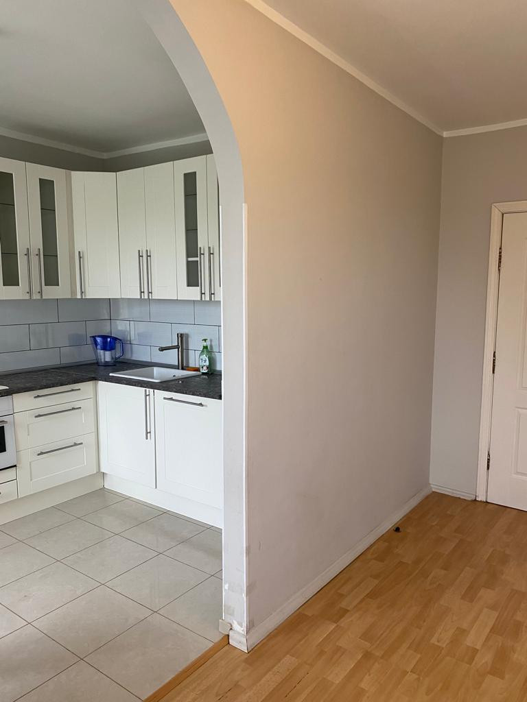 Общая площадь 58 м ,кухня -гостиная 20 м , спальня с гардеробной  25 м , санузел совмещенный, потолки 2.7 м.