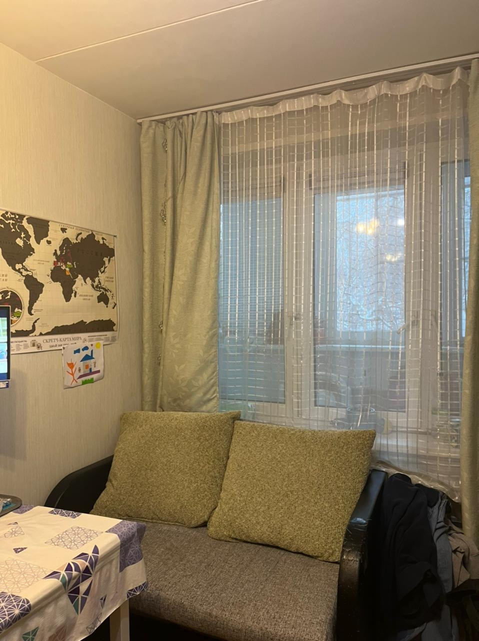 Комната оборудована вместительной гардеробной. В комнате и на кухне сделан ремонт несколько лет назад (косметический), балкон- застеклили.
