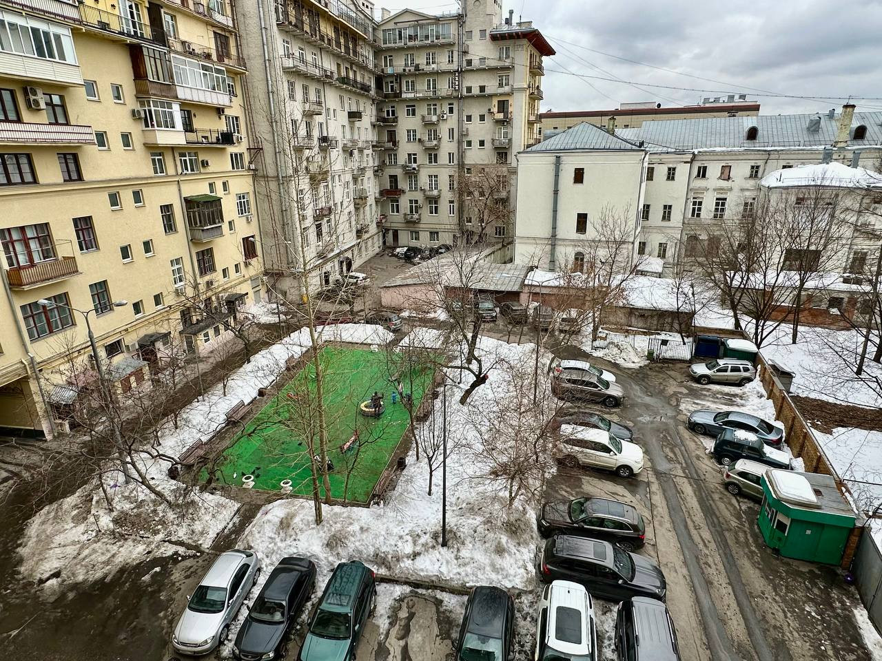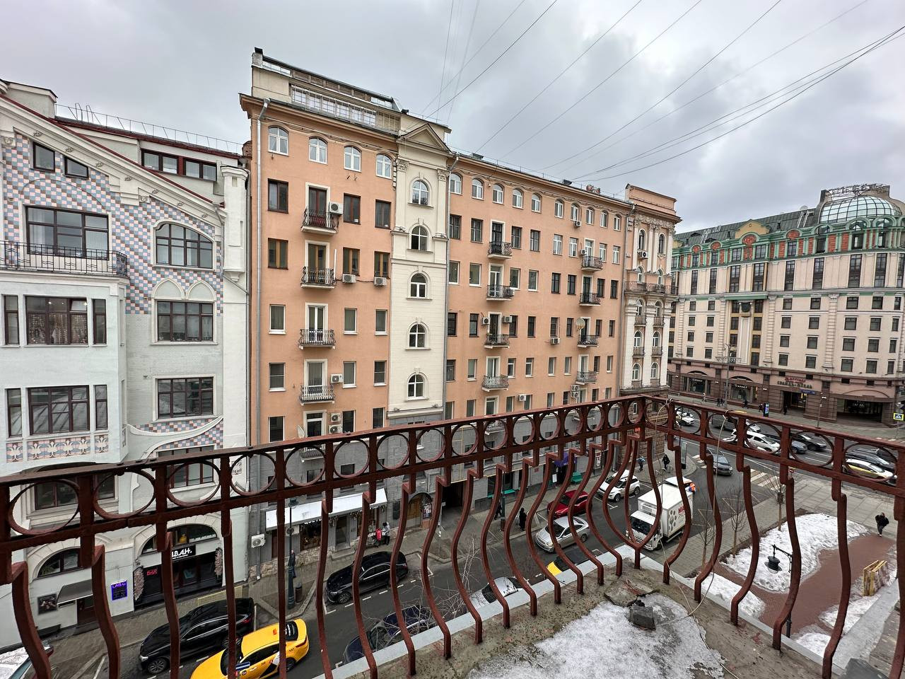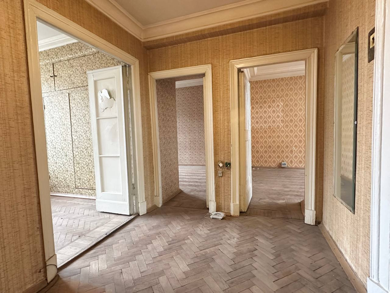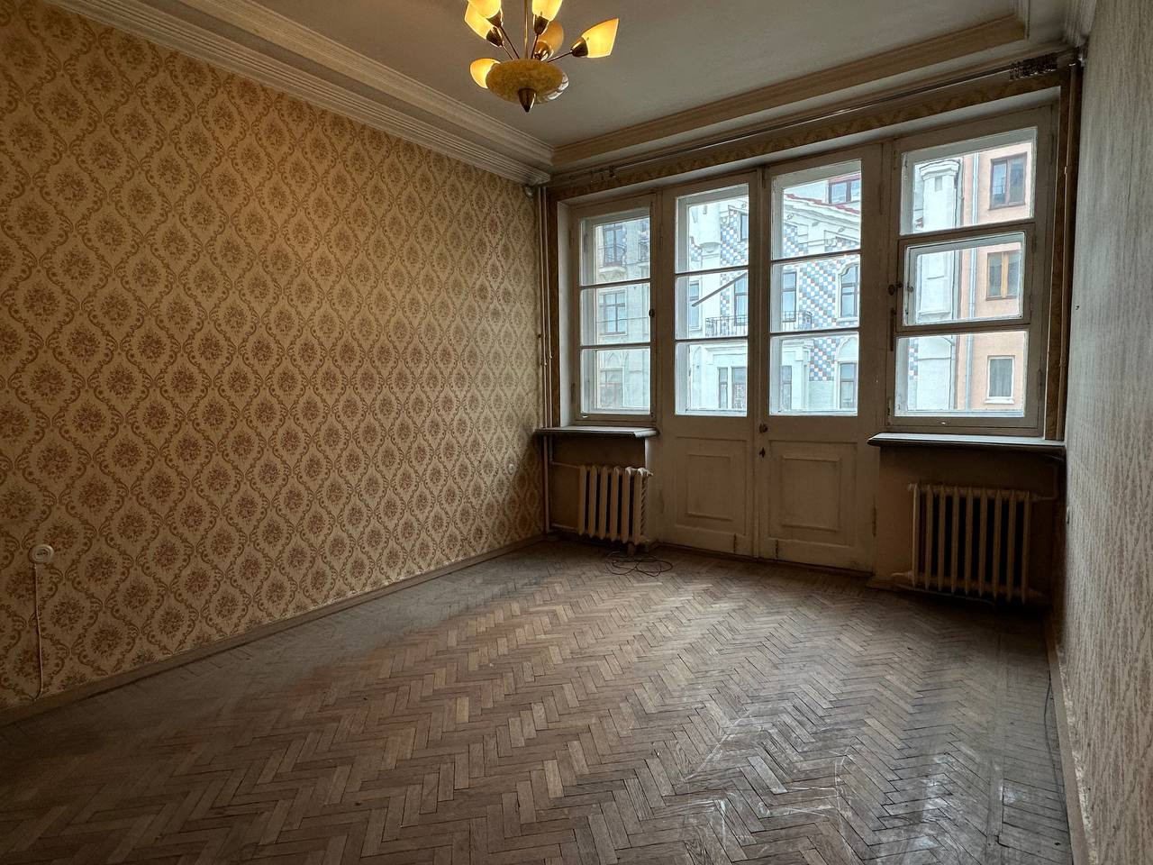 - Удобная планировка: распашонка с тремя изолированными просторными комнатами, окна во двор и на Благовещенский переулок, высокие потолки, большая прихожая.