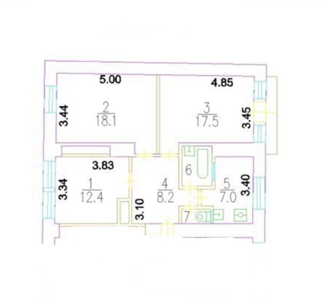 3-комнатная квартира, 67.1 м2, этаж 5 / 9, на продажу в Москве, Тверская улица, 25/12