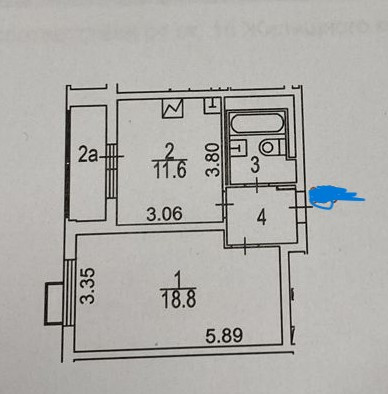 Жилая площадь 18.8 м2