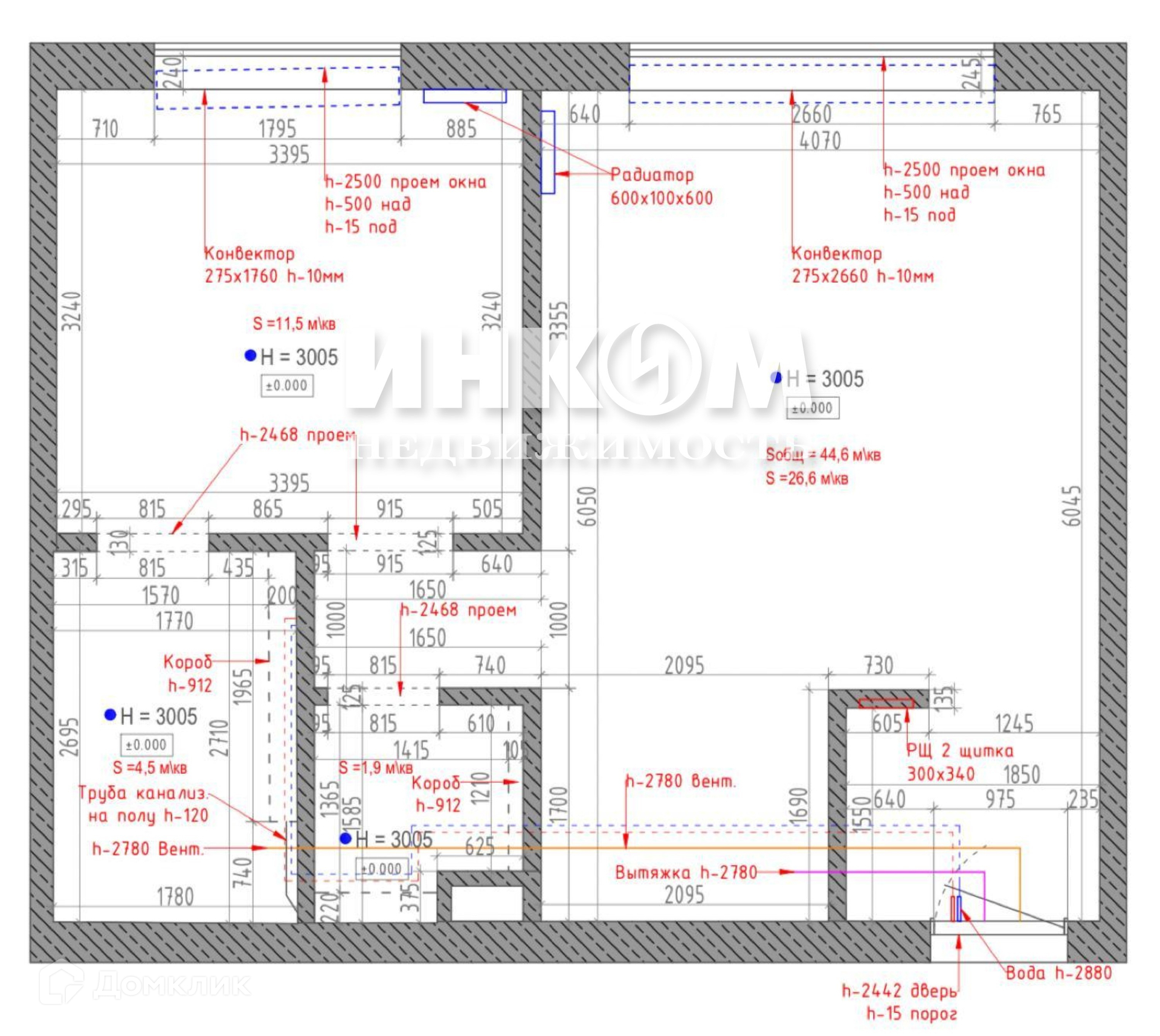 Высота потолков 3 м