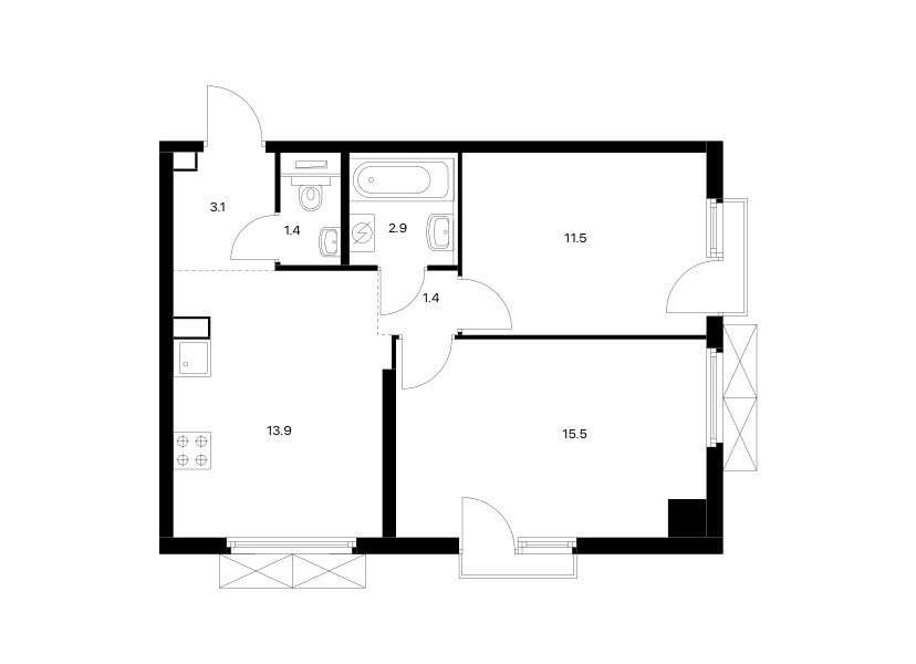 Площадь кухни 13.9 м2