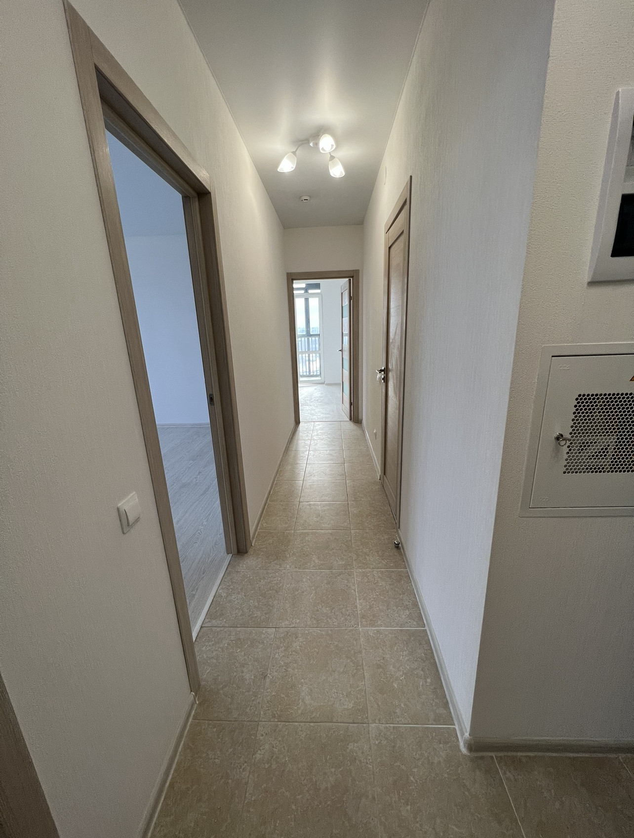 Планировка квартиры следующая: достаточно просторная квадратная кухня 10м, большая комната 20м, вторая комната с балконом 11,8м, балкон 2,7м, коридор 4м, предусмотрена ниша под шкаф для верхней одежды. Высота потолков - 2,7м.